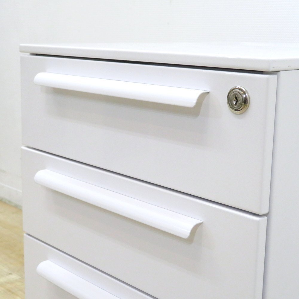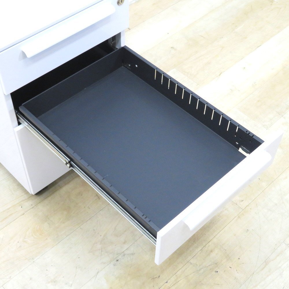 限られたスペースを有効活用したい方にぴったりのコンパクトで機能的な3段ワゴン。 本体は粉体塗装スチール製で頑丈な構造を採用。長期間の使用にも耐える高い耐久性を備えています。 引き出しは3段構造で、書類、文具、小物、備品などを用途に応じて整理整頓可能。 ロック式のキャスター付きで、移動や固定もスムーズです。 どんなオフィス空間にも調和し、清潔感のあるすっきりとした印象を演出するデザイン。 デスクまわりをすっきり整えたい方、デザイン性と機能性を両立したワゴンをお探しの方におすすめのオフィスワゴンです。 ※写真で掲載の商品そのものが届くとは限りません。複数入荷した中の1点を掲載している場合がございます。 |
