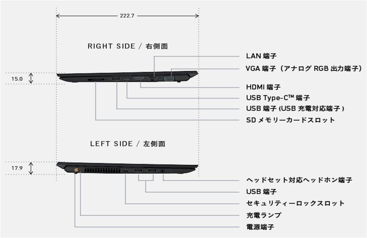 ▲ ディスプレータイプ : 14.0型ワイド FHD 広視野角・高品位 TFTカラー LED液晶(省電力LEDバックライト)1920×1080ドット