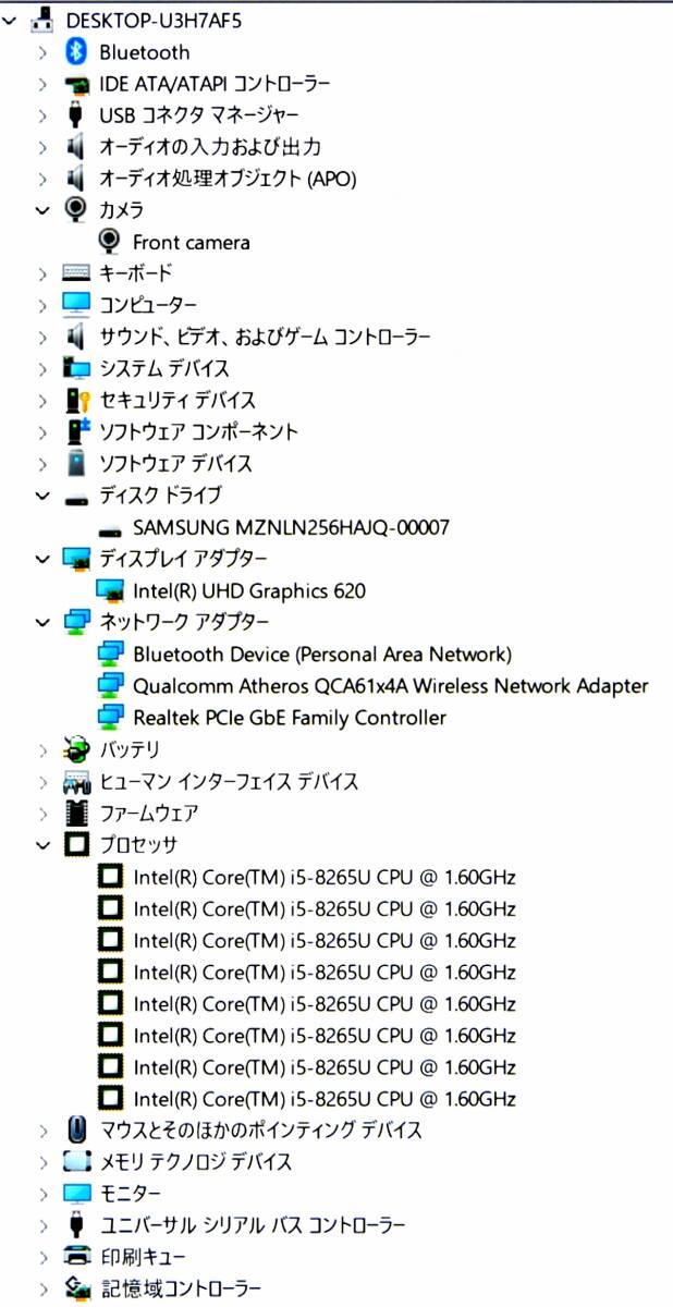 ▲ CPU : インテル Core i5-8265U プロセッサー 1.60GHz (ターボブースト時 最大 3.90GHz)