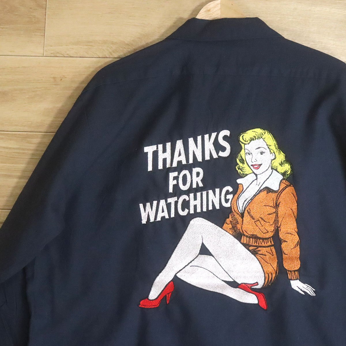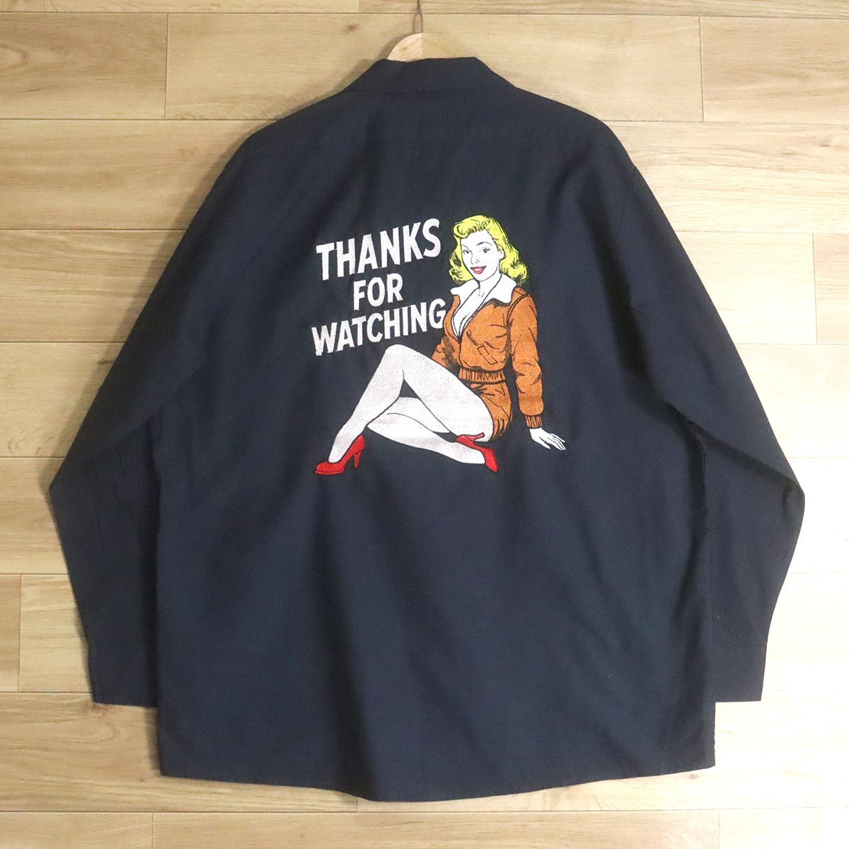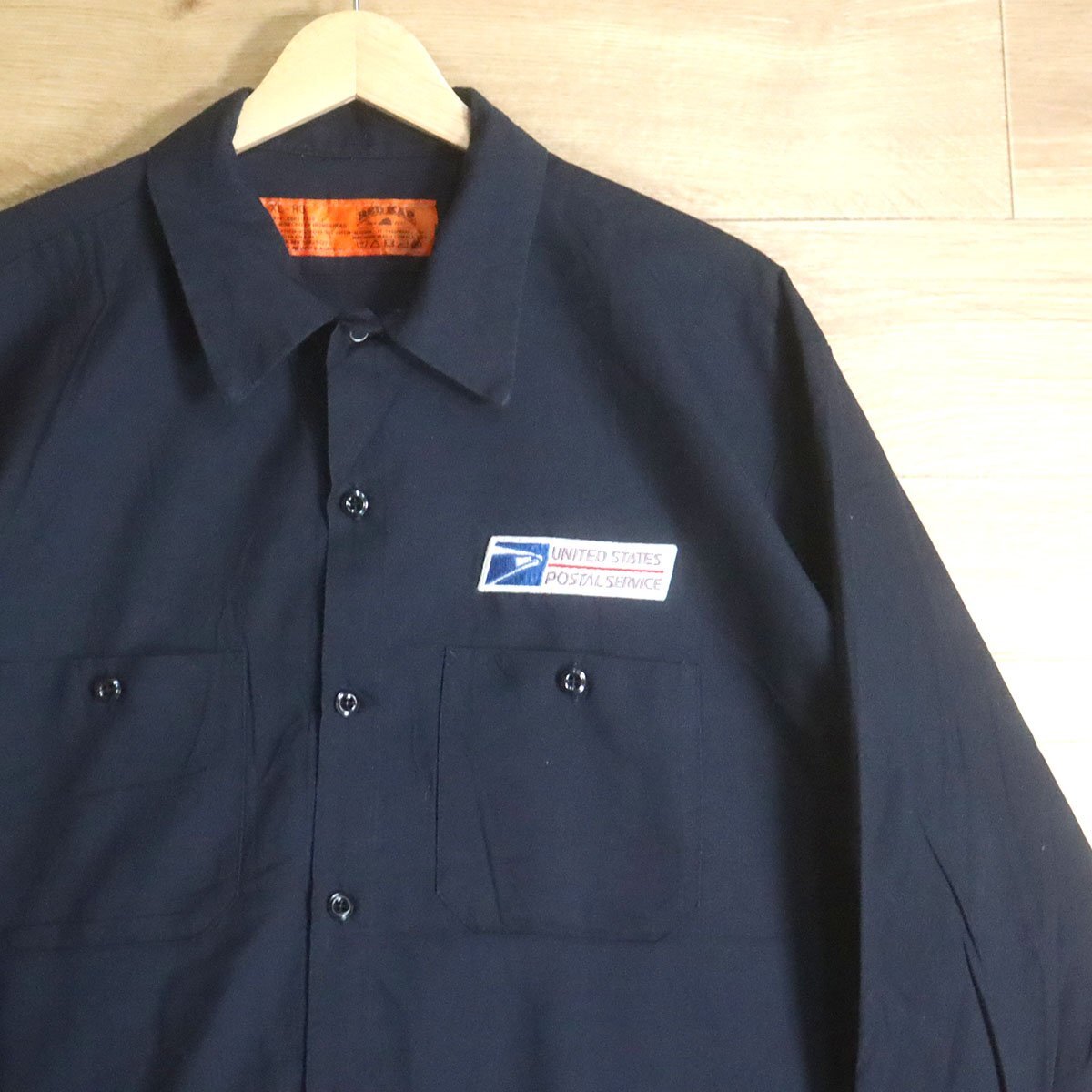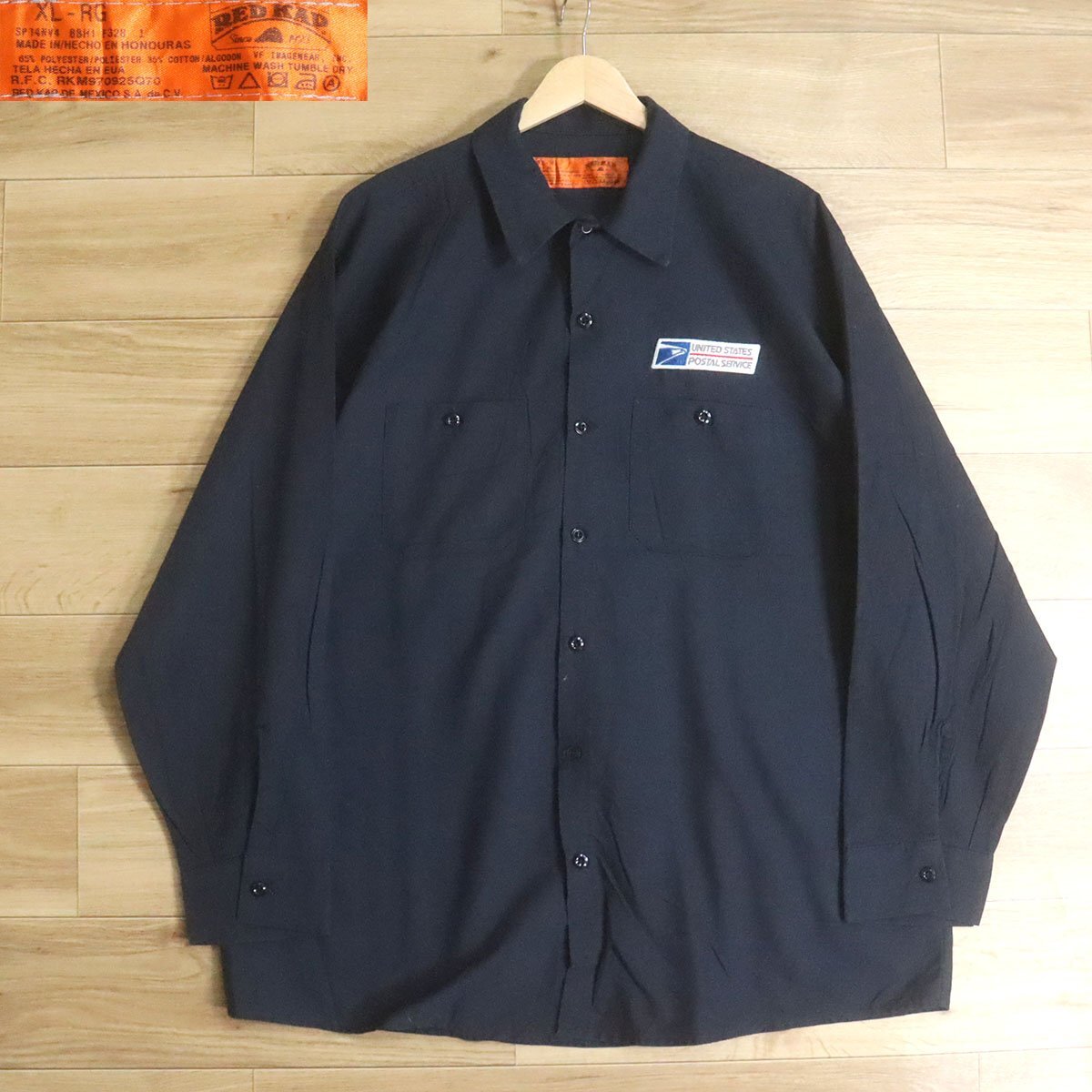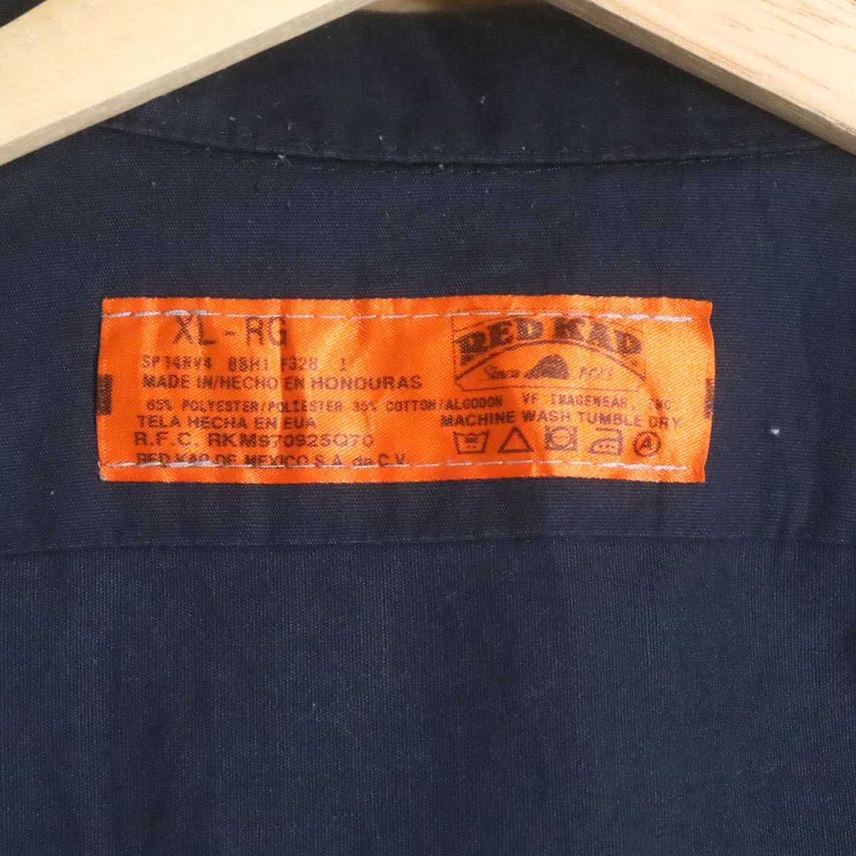 D4O/O9.5-6 アメリカ古着 REDKAP ワークシャツ 長袖シャツ バック刺繍 ワークウェア メンズ ネイビー系 XL