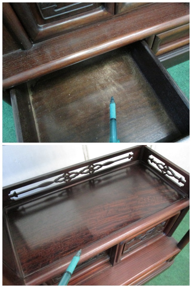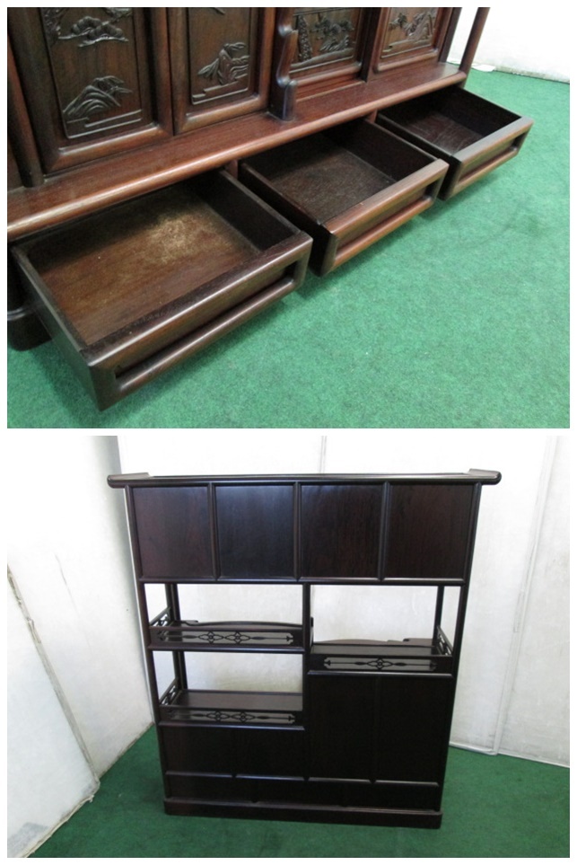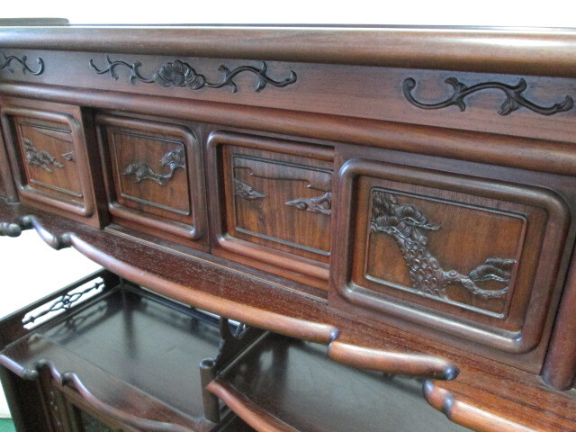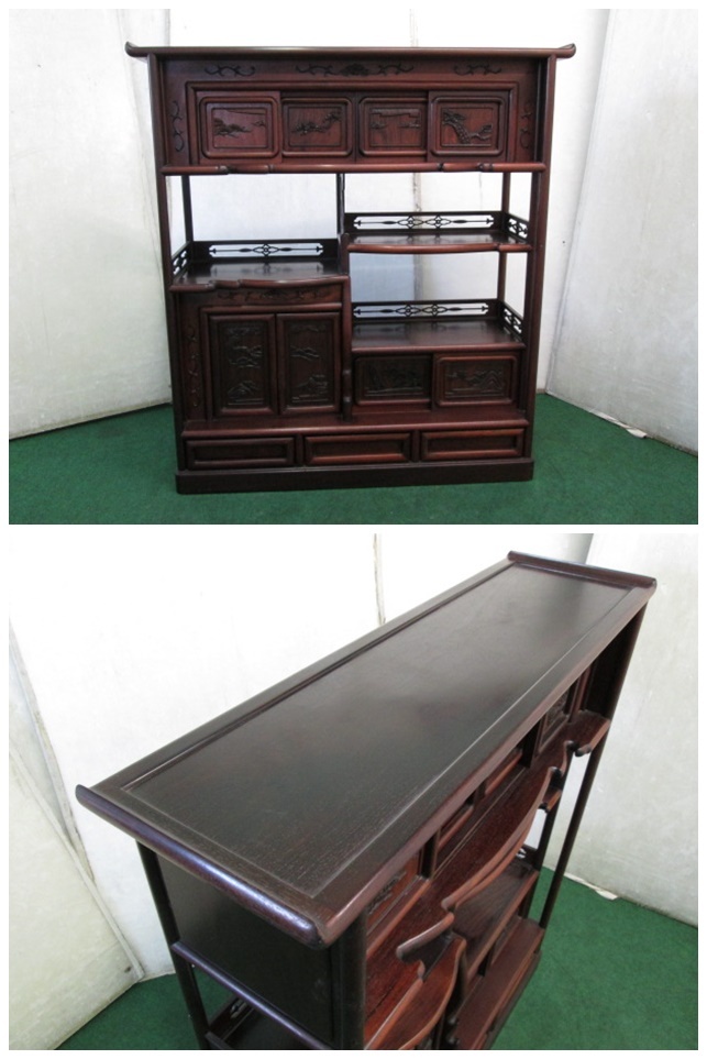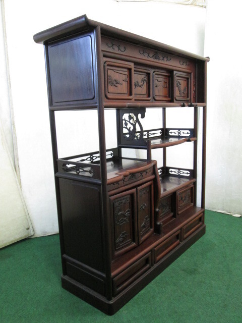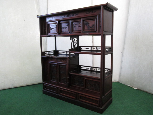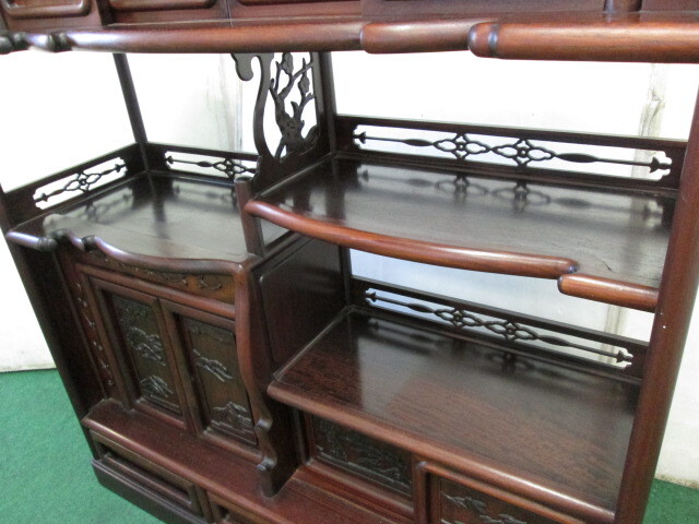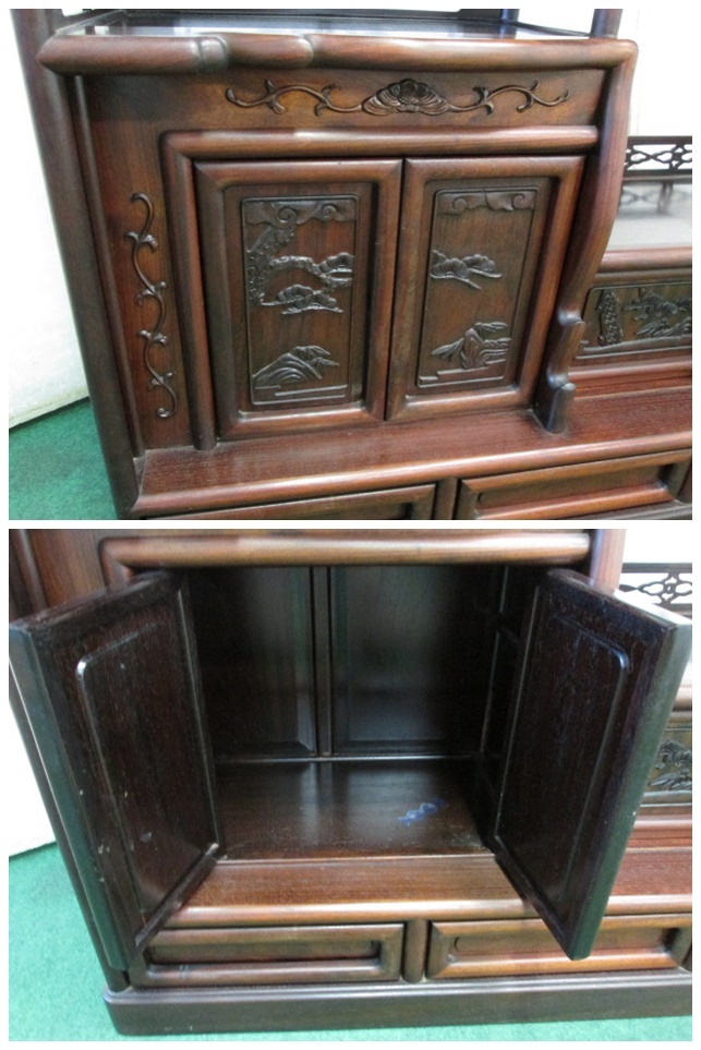 無垢 花梨材 飾り棚 違い棚 茶棚 透かし彫り(0417CH)7CY-13