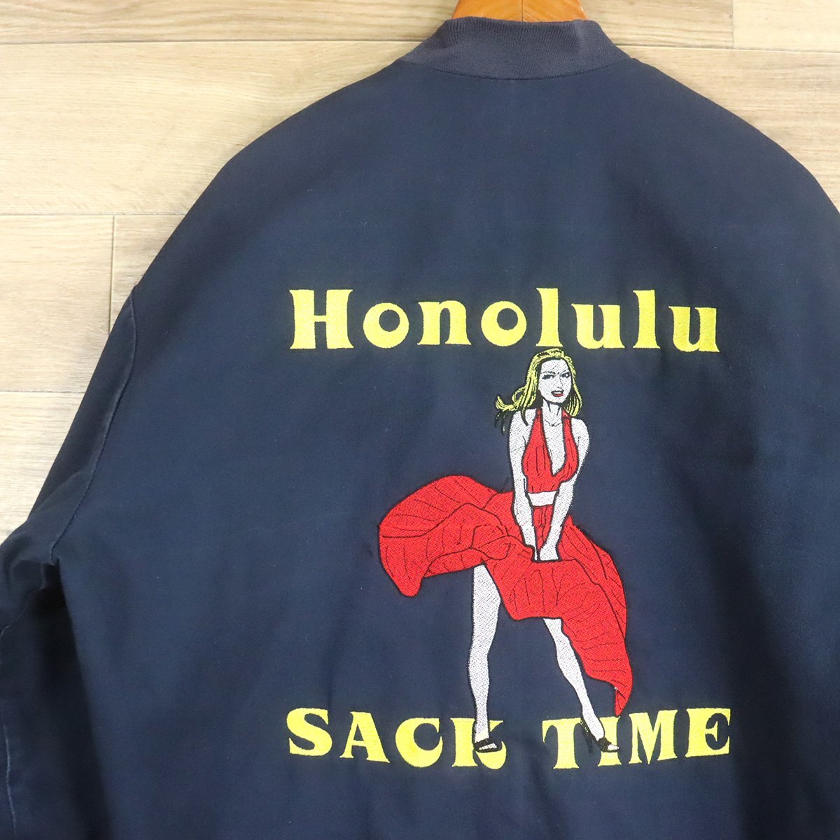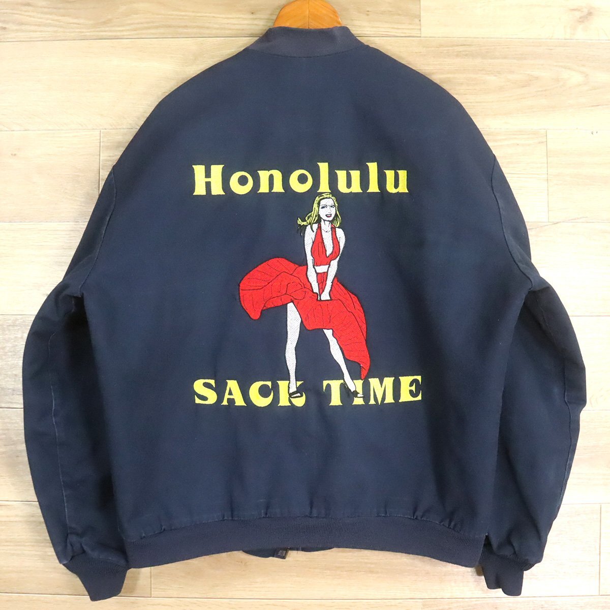 K5T/D12.10-1 アメリカ古着 UNIWEAR ワークジャケット L バック刺繍 ピンナップガール Honolulu ワッペン ジャンパー ブルゾン