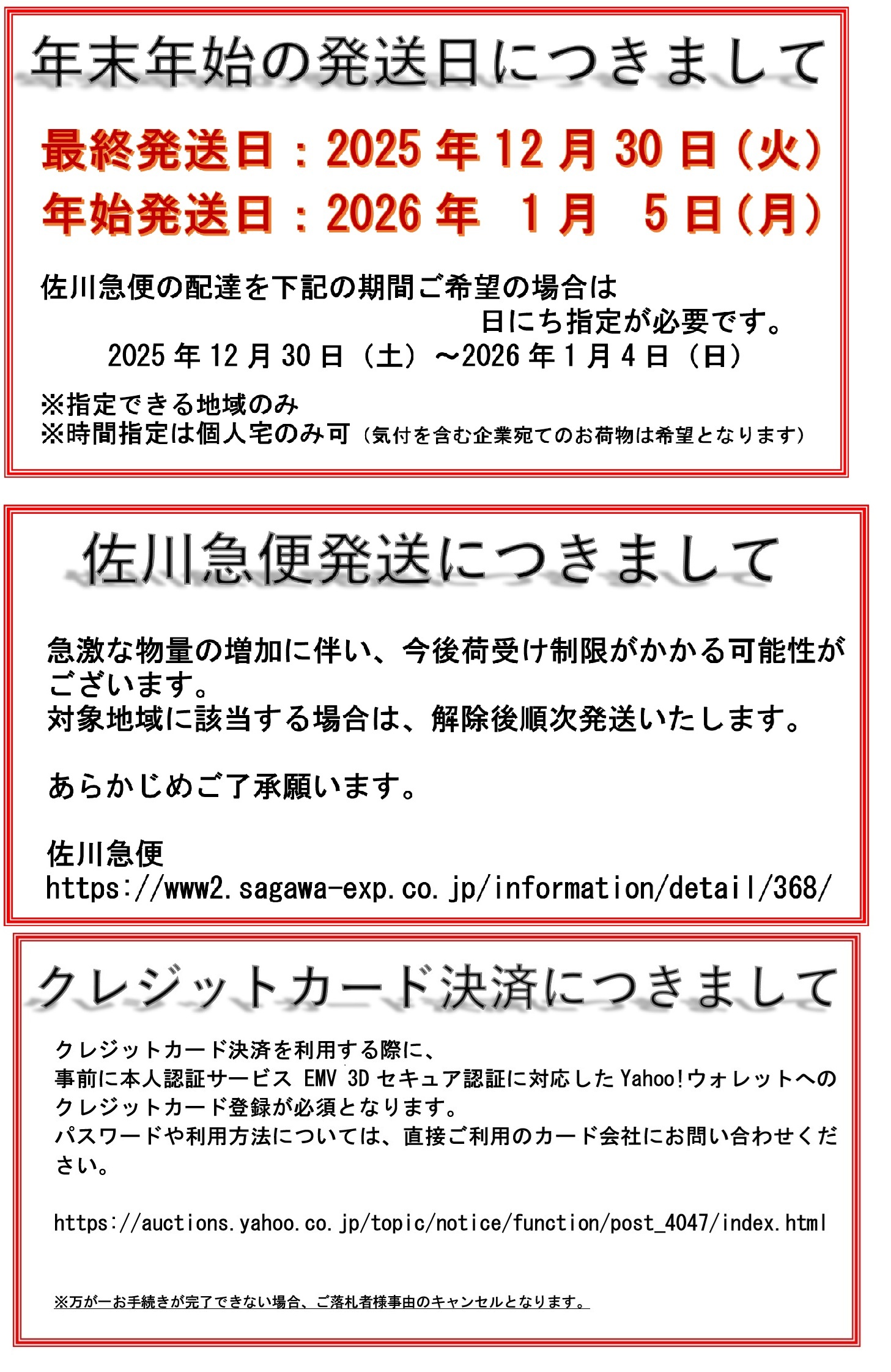 Ⅲ.一旦成功中标,您必须全额支付该拍品(成交价+消费税+银行转账费+日本邮费+代购费)。