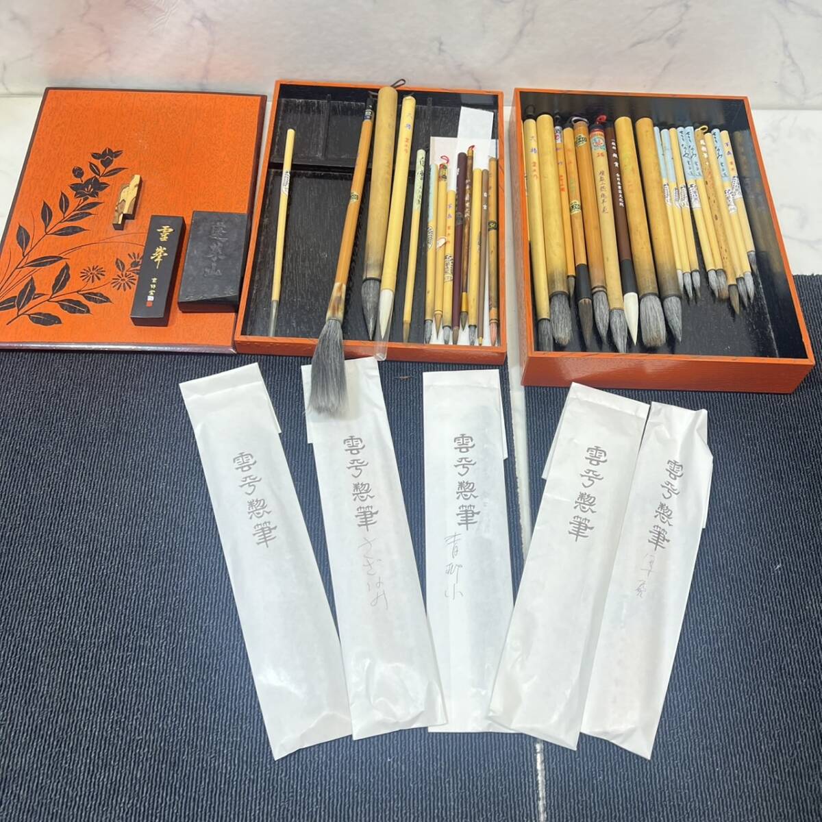 【中古 現状 未使用品あり】書道 筆 墨 セット 伝統工芸 雲平筆 攀桂堂 他 / 古墨 蓬山 童峯 李珍堂製 / 書道具 大量 まとめ 管理 B中段