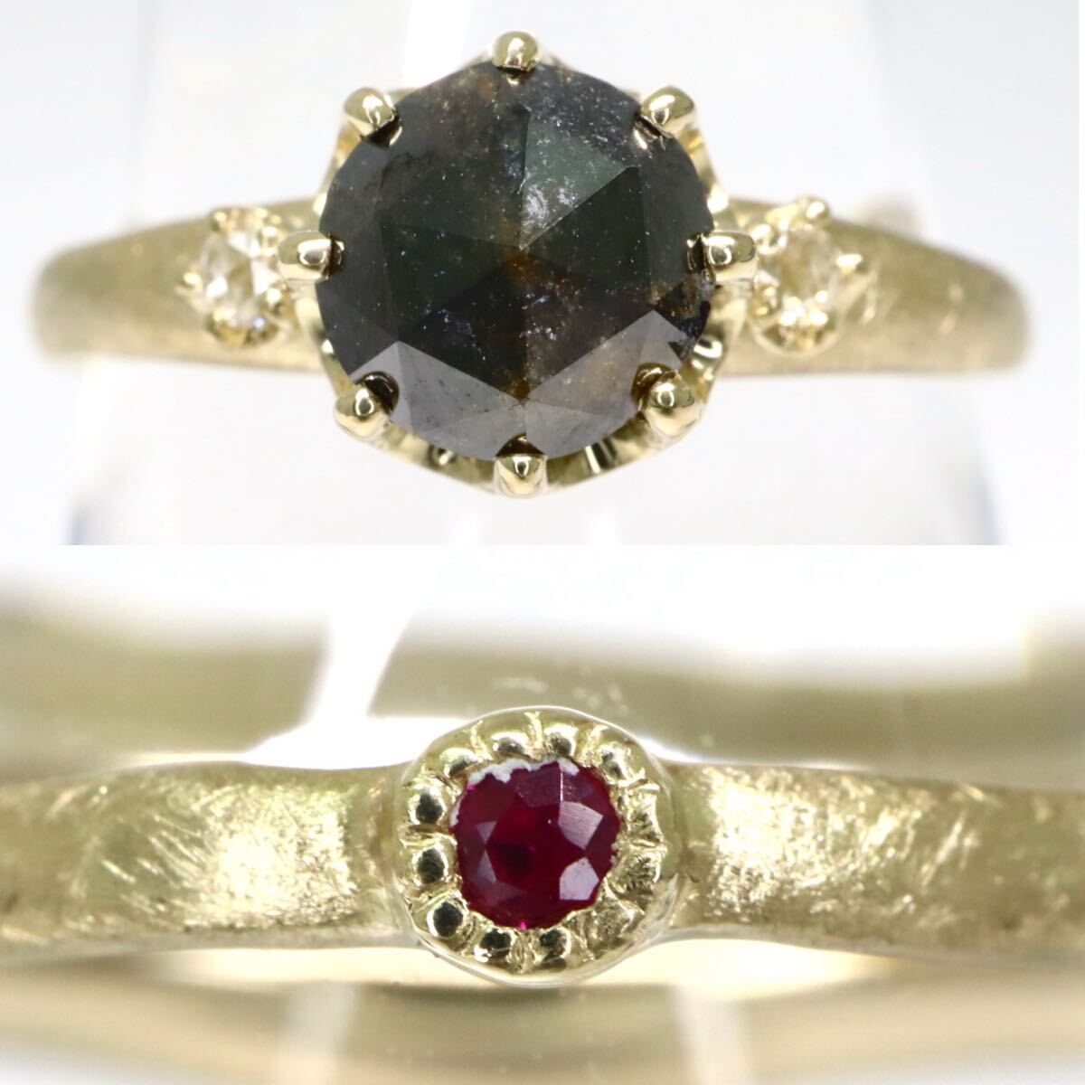 〈天然ブラックダイヤモンド/天然ルビーリング〉