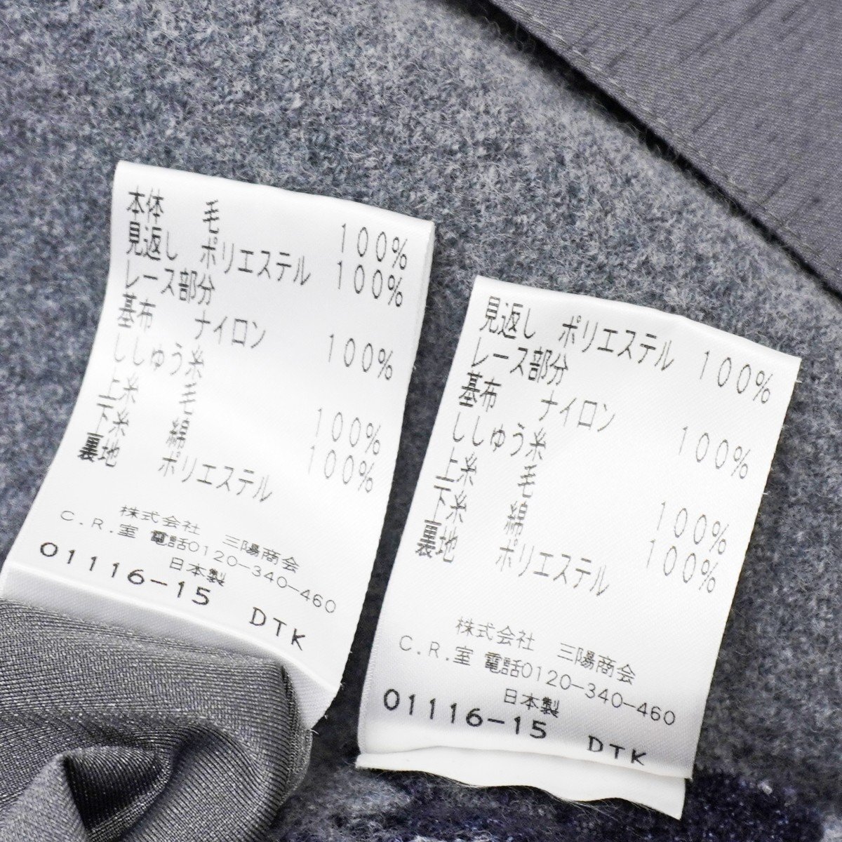 | ■ ◇【TO BE CHIC トゥービーシック】レース ウール セットアップ セットアップ グレー V/46 ■ |