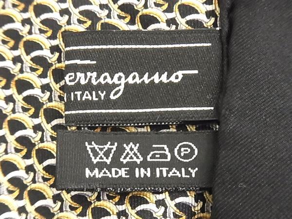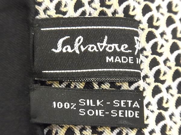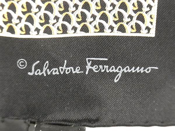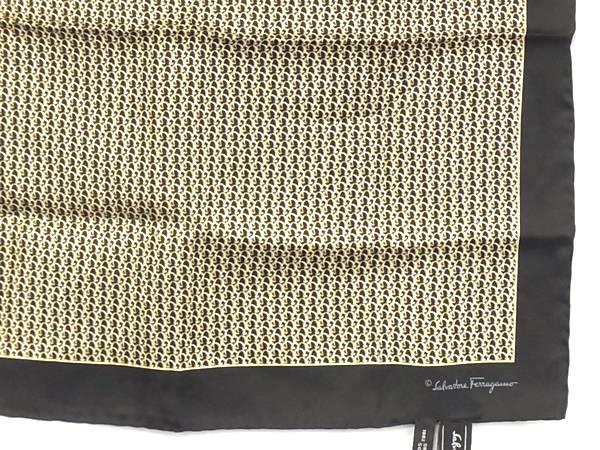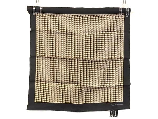■極美品■ Salvatore Ferragamo フェラガモ シルク100% 総柄 スカーフ ポケットチーフ ブラック系 DI2430