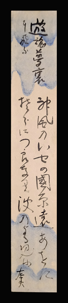 【読み】 「遊魂夢裏に飛ぶ 神風のいせの国原遠あをに そらにつらなり波のよる見ゆ 左千夫」 紙本肉筆未装短冊1点 作品寸法:36.2cm x 6.0cm 商品状態:美品。実際の品を画像にてお確かめ下さい。 ★本品は印刷ではなく肉筆保証の作品です。 ★本品は真作保証の作品です。 出品作品の読みにつきましては、ご落札頂いた後のご依頼についてのみ、出来るだけ対応させて頂きます。 伊藤左千夫/いとう-さちお 1864-1913。明治時代の歌人,小説家。 元治元年8月18日生まれ。上京して搾乳業をいとなむ。明治33年から正岡子規に師事し,子規没後の36年長塚節(たかし)らと歌誌「馬酔木(あしび)」を創刊。のち「アララギ」を主宰した。歌論や小説も発表した。大正2年7月30日死去。50歳。上総(かずさ)(千葉県)出身。明治法律学校(現明大)中退。本名は幸次郎。小説に「野菊の墓」。 出典:講談社デジタル版 日本人名大辞典+Plus |