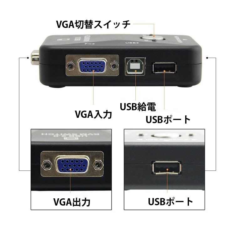 ◆VGA切替器 セレクター VGA信号2入力→1出力 パソコン切替表示 バスパワーUSX:0.0ポート3個搭載 VGA2IN1