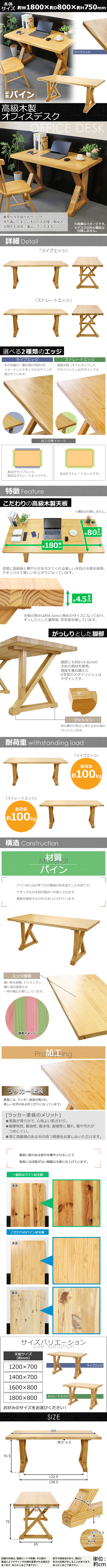 | 商品名 | 送料無料 オフィスデスク 単品 約W1800×約D800×約H750mm オフィステーブル パイン材 おしゃれ 高級 木製 天然木 無垢材 天板厚み約4.5cm 耐荷重約100kg K字型脚部 デスク テーブル 平机 ワークデスク パソコンデスク PCデスク 机 学習机 事務机 オフィス家具 t002p180 |