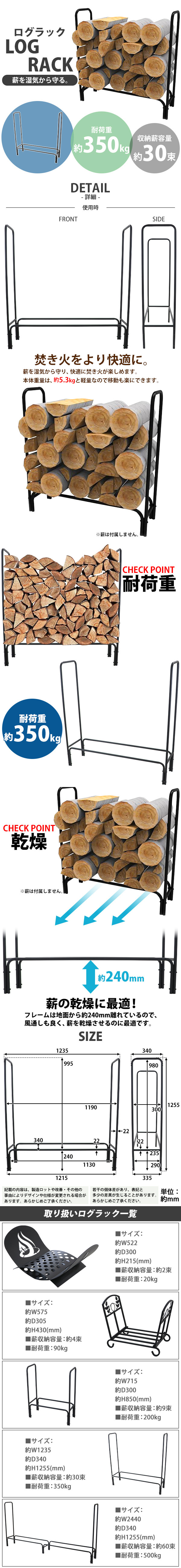 | 商品名 | 送料無料 ログラック 薪ラック 耐荷重約350kg 収納薪容量約30束 軽量 大容量 ログホルダー 焚き火 焚き木 薪 薪置き 薪棚 薪ストッカー 薪収納 焚火 収納 保管 アウトドア バーベキュー BBQ 薪ストーブ ストーブ関連用品 暖炉 lograckh4 |