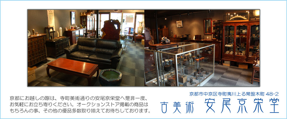 京栄net では 茶道具 煎茶 仏教美術 中国美術 朝鮮美術 武具 書画 版画古民具など日本全国に出張査定に伺い商談、買取を行っております。 買取依頼 遺品整理などお気軽にご相談下さい。(^-^) 数寄者、お茶の各流派の先生やコレクターの方々よりの依頼品や買取品など、お預かりした興味深い美術骨董品の数々を随時、低価格より出品してまいります。 京栄netのオークションを楽しんで頂ければ幸いです。(^^) 【金閣】中京 寺町 本店 ※金閣・銀閣は管理発送場所の略名で発送場所の所在地が異なるため同日の落札であっても同梱包は致しかねます。何卒、ご了承の上ご入札お願いいたします。店主 |