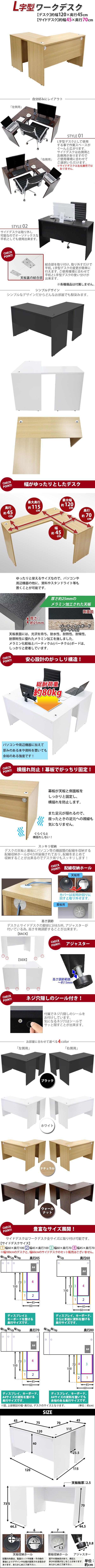 | 商品紹介 | ■作業スペースを広く確保出来る、L字型ワークデスクです。 ■サイドデスクの幅が約45cmのタイプです。 ■会議室や事務所等、オフィス家具として様々なシーンでお使いいただけます。 ■天板には、メラミン加工を施しています。 ■幕板が天板と側面板をがっちりと固定!横揺れを防止します。 ■ネジ穴隠しのシール付き。(サイドデスクのみ付属) ■デスクの天板と幕板に配線収納ホールが2カ所ずつ備わっています。 ■アジャスターで高さの調節が可能です。(高さ調節範囲〜約15mm) ※こちらの商品は、組立て式です。組立てにはプラスドライバーが必要です。お客様でご用意ください。 ※組立図が付属します。 ※サイドデスクの取り付けはデスクの右側専用となります。 ■材質:パーティクル(パーチクル)ボード(メラミン加工)(本体、サイドデスク)、プラスチック(アジャスター、配線収納ホール) ■重量:約36kg(デスク:約23kg、サイドデスク:約13kg) ■総耐荷重:約80kg ●新品商品ではありますが、輸入商品の為、多少の擦り傷などがある場合がございますので、ご納得の上ご購入下さいませ。 ●ご購入後、お客様ご都合によるご返品、ご返金等は一切お受け致しておりません。 ●本商品を使用した際に発生したトラブル、事故につきまして、当社は一切の責任を負いません。ご使用に関しましては、全て自己責任にてお願い致します。 ※カラーはナチュラルとなります。 |