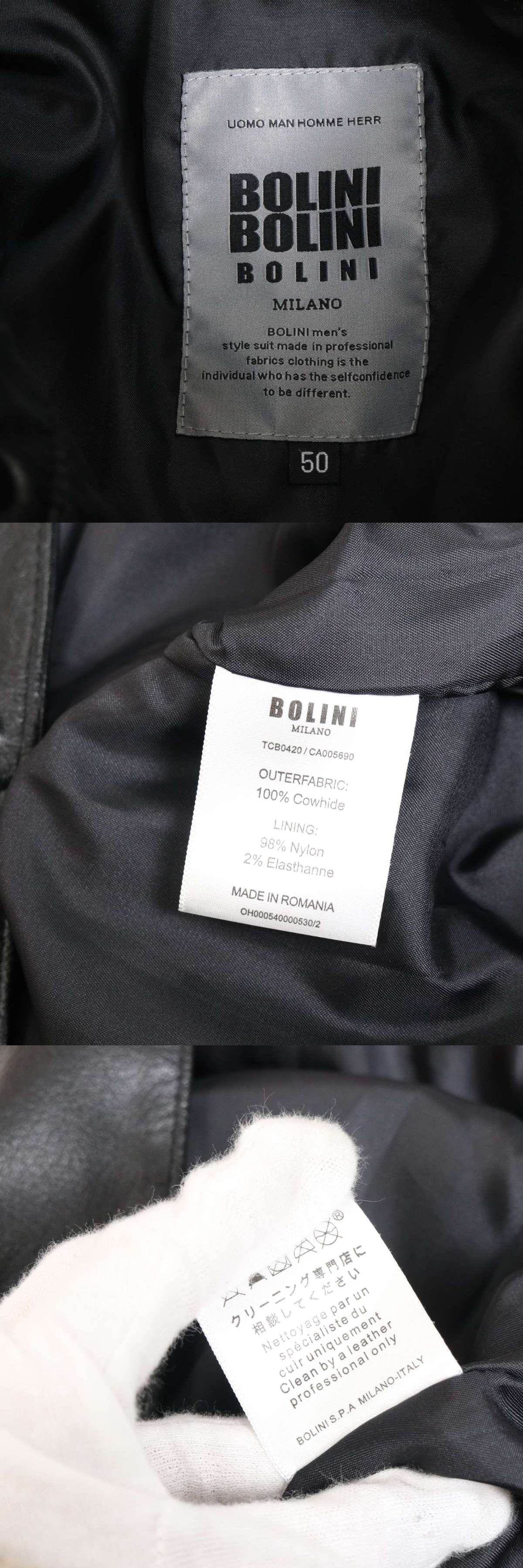 BOLINI ボリーニ ボリニ 秋冬 牛革★ カウハイド レザー シングル ライダース ジャケット Sz.50 メンズ 黒