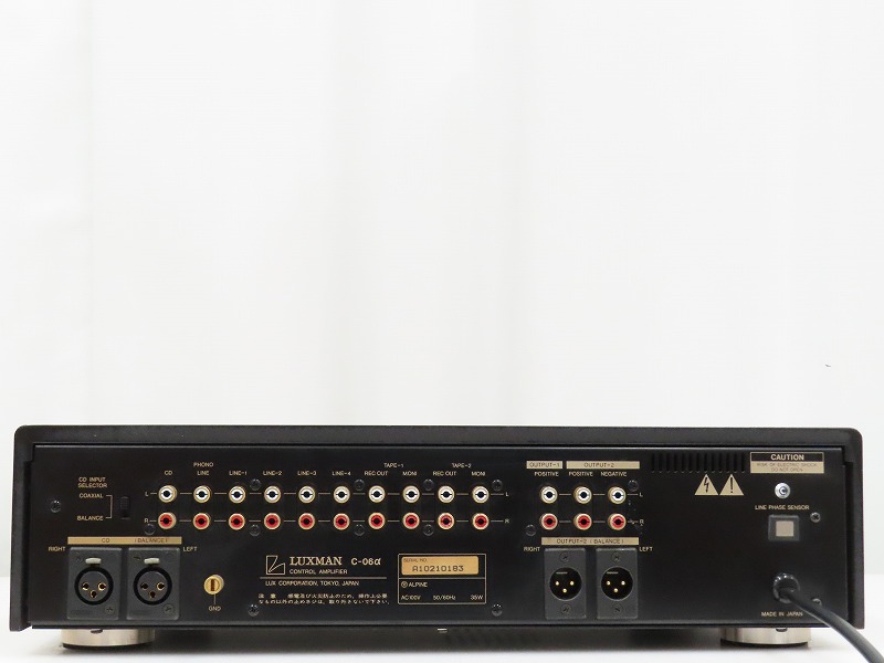 ■メーカー : LUXMAN ■型番 : C-06α ■外径寸法 : W444×H120×D414mm ■重量 : 11kg 【商品の状態 当店での確認内容】 基本動作確認済み 「商品の状態」に関しましては当方主観の目安となります。外観などは中古品で個人差もありますので詳細は画像にてご判断ください。 画像にて不明な点はご質問下さい。 出品商品は画像のものですべてになります。画像に写っているもの以外は付属いたしません。 ※注意※ ヤフオクのシステム上、送料表記が送料未定となっておりますが、送料に関しては全て有償となりますので下記を参照下さい。 【送料 全国一律 2,080 円 沖縄、離島は別途お見積り】 ※送料がお得になるサービスです(下取りシステムのご案内です) ストア決済利用時にクレジットカードやPayPay残高/PayPayクレジットを利用の方は留意点がございますのでこちらを参照上ご利用ください。 当ストアでは商品を安全にお届け出来るよう提携運送会社と協議の上、発泡緩衝材や強度段ボールの使用等 運送会社が指定する梱包方法や資材を採用しております。 より安全にお届け出来るよう商品仕様により梱包サイズが大きくなる場合や個口数が増える事がございます。 【当ストアオークションルールを入札前に必ずご確認ください。】 【落札後の取引手順】 ・落札後は取引ナビにて、必要事項をご入力後、送信ください。 取引終了後48時間(土、日は除く)以内に入力をお願い致します。 ※ご連絡が頂けない場合は落札者様都合でのキャンセルとさせていただきます。 ・落札代金(商品代金+消費税+送料)の入金をお願い致します。 ※大型商品の場合は送料確定後の決済となる為取引ナビを入力頂き、当ストアより送料のご案内が来るまでお待ちください。(土曜、日曜、祝日の場合は翌営業日より順次ご案内いたします) ・お支払い方法はクレジットカード/PayPay残高/PayPayクレジット/PayPay銀行/ゆうちょ銀行のみです。 ※商品代金引換(代引き)のお取り扱いはしておりません。 ※領収証の発行が必要な方はご連絡ください。 ※銀行振込の際の振込手数料はご負担願います。 ・入金確認後に出荷手配を致します。 (原則入金確認後3営業日以内に発送いたしますが、大型や重量のある製品はお時間をいただく場合もございます。) ・発送は当店指定の運送会社の元払いのみでの発送となります。 ※他の運送会社、送料代引き等は致しかねます。 ※落札者様ご自身での運送会社の手配いただく事も可能ですが荷物事故の責任の所在の問題上、梱包は致しかねます。 ※店頭にお越し頂き手渡しも可能(福岡市早良区)です。ご希望の方はご落札後にご連絡下さい。 ・大型/重量物商品の送料につきましては商品の特性上、荷降ろし状況等により送料が大きく前後し運送業者に別途見積りが必要な為、早めのお問い合わせにてお見積り上、入札をお願い致します。 【初期不良の保証について】 ・商品到着後の初期動作不良、また配送中の事故による破損、不具合が有る場合は、商品発送後10日以内に当ストアまでご連絡ください。当ストアでは修理での対応を優先させて頂きますが、修理不可の場合は全額返金させて頂きます。 (商品代金+消費税+送料のお支払い頂いた金額となります) 【初期不良の保証の対象外について】 次の場合は保証の対象外となりますのご留意ください ・ジャンク商品、現状商品、難あり商品での出品商品。 ※難あり商品に関しましては動作確認時に一部動作不良が確認された商品になり、記載している動作確認以外にも、動作不良がある可能性もございます。こちらに関しましても保証対象外となりますことをご理解ください。 ・年代物のオーディオなどで、当店にてわからない範囲で部品が交換されている場合 ・楽器類の特殊機材(マイクロスコープ等)での確認までは行っておりません。気になる方は事前にご質問いただくか、入札をお控えください。 ※初期不良に関しましては【商品の状態】に記載のもの、またそれによって起因する動作不良は対象外です。 ※商品発送後10日を過ぎてのご連絡は対応が出来ませんので、商品が到着しましたらお早めに確認をお願い致します。 【メーカー保証の加入・継承】 ・未使用品、展示品やメーカー保証期間が残っている商品に関しまして、メーカー保証の加入、継承が必要な方は、落札後取引ナビ内にて当ストアにお知らせください。商品発送までにご連絡いただけない場合、メーカー保証の手続きを承れない場合があります。 【評価について】 ・評価不要の場合、必ず取引ナビの「要望欄」にてお知らせください。それ以外でご連絡をいただいた場合、対応できない可能性がございます。一度行った評価はシステム上取り消しが行えませんのでご了承ください。 【入札削除・キャンセルについて】 ・入札後はトラブル防止の為いかなる事情がおきましても入札を削除等は致しておりません。 ご検討の上入札をお願い致します。間違った際の入札額の金額訂正はご自身で行ってくださ
