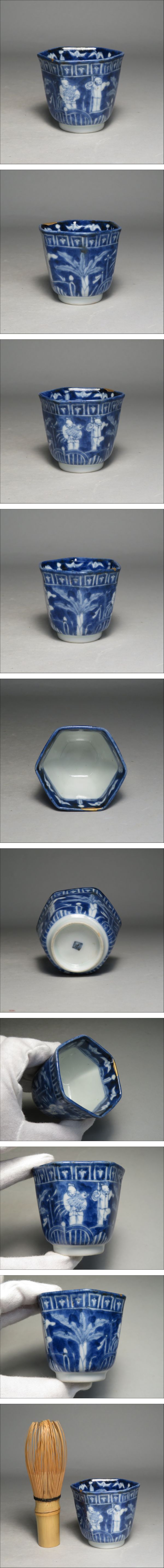 | 「コレクター所蔵品」◆江戸時代 古伊万里 染付唐人図 六角のぞき猪口 蕎麦猪口◆検:伊万里焼/有田焼/鍋島焼 | ||