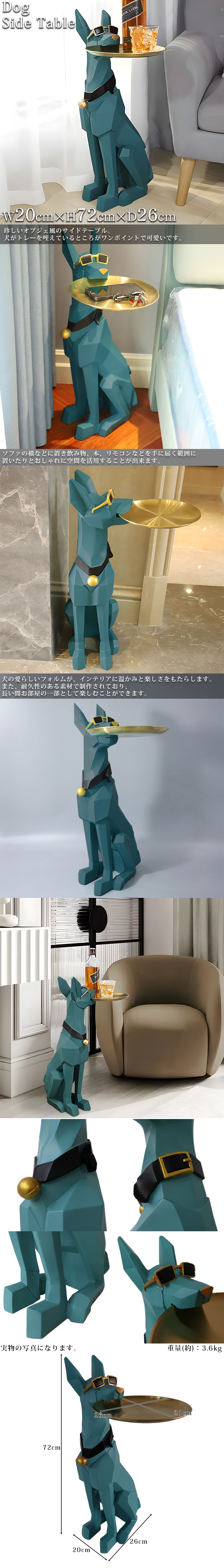 ![]() 珍しいオブジェ風のサイドテーブルです。 犬がトレーを咥えているようなデザインのサイドテーブルは、ユニークで魅力的なアクセントアイテムです。 まるで忠実な仲間がトレーを持っているかのような姿勢が、心温まる感覚を呼び起こします。 トレーを咥えているところがワンポイントで可愛いです。 犬の愛らしいフォルムが、インテリアに温かみと楽しさをもたらします。 ソファの横などに置き飲み物、本、リモコンなどを手に届く範囲に置いたりとおしゃれに空間を活用することが出来ます。 耐久性のある素材で制作されており、長い間お部屋の一部として楽しむことができます。 また、親しい方へのギフトとしても喜ばれることでしょう。 トレーは取り外し可能となっております。 届いてスグに使えるカンタン組立 天板を犬の口に咥えさせるだけ! 複雑な作業は必要ないので、慣れてない方でもカンタンに組み立てることが出来ます。 ティファニーブルー風のお色になります。 サイズ(約):縦72cm、横20cm、奥行き26cm トレーサイズ(約):横26cm、奥行21cm カラー:ティファニーブルー風×ゴールド 素材 本体:プラスチック トレー:ステンレス 重量(約):3.6kg ※この商品はお客様の方で簡単な組み立てが必要になります。 |