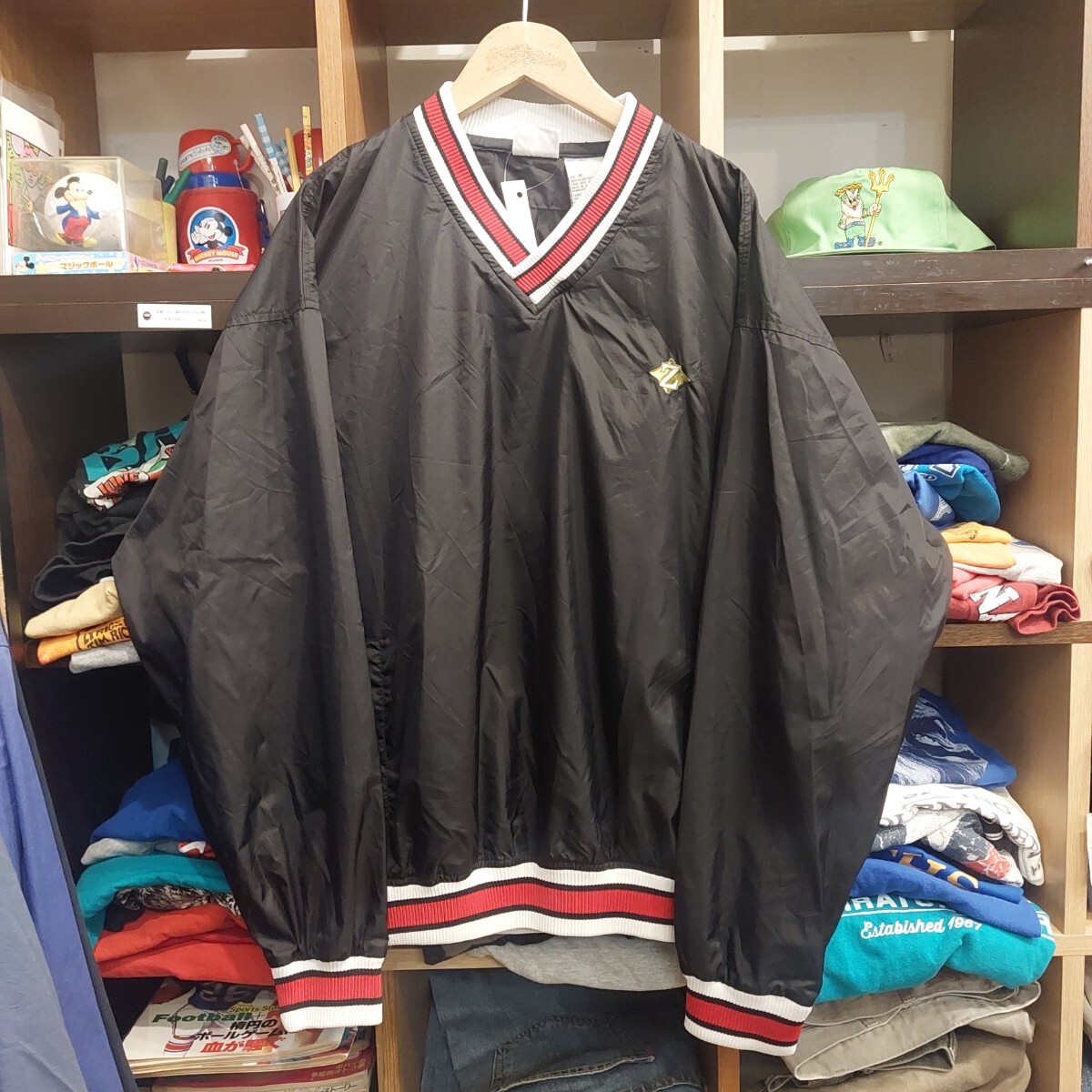 ■商品      : Vintage 90s Streetwear Mens M Striped Pullover Windbreaker Jacket Black 90年代 ジャージーズ プルオーバー ジャケット 黒 07E2202