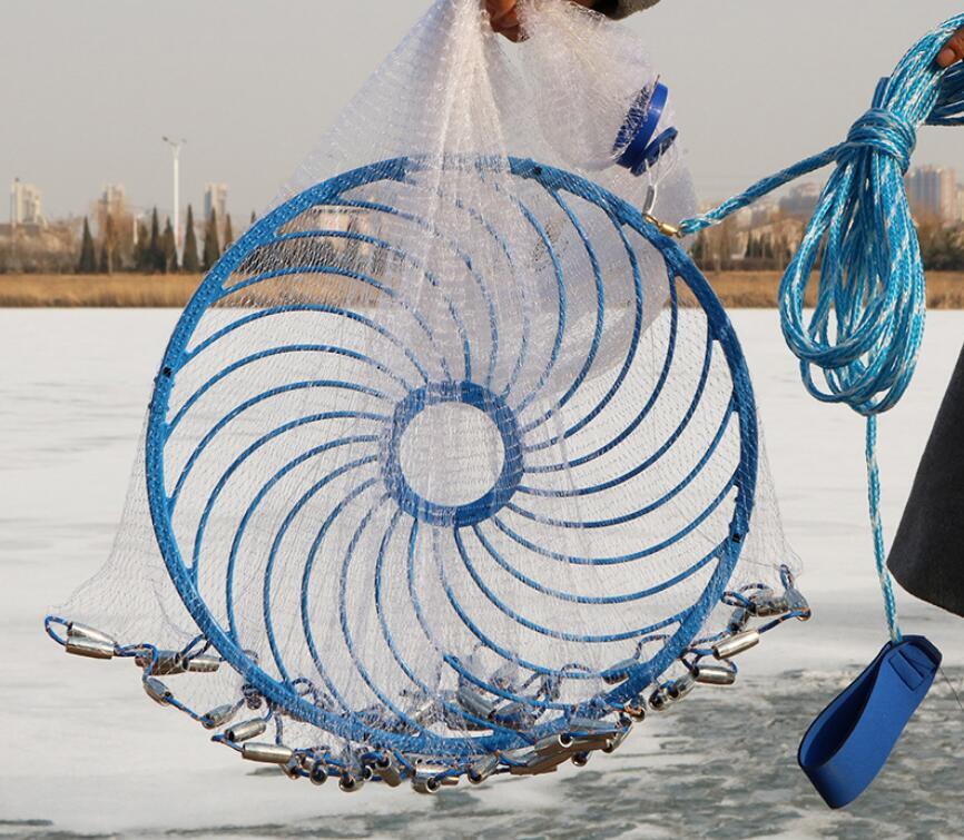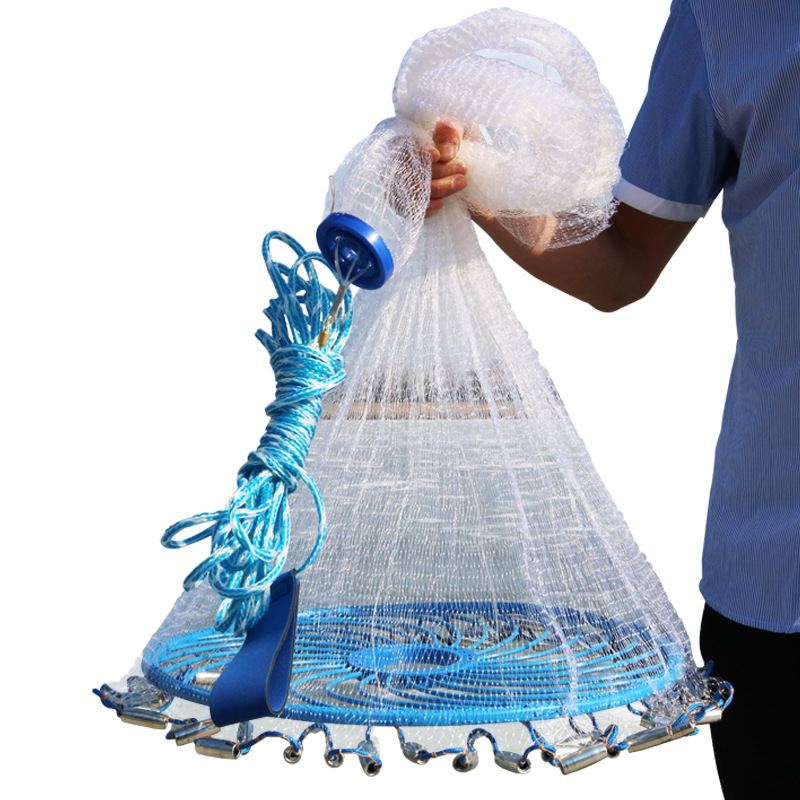 高品質シンカー付き投網 モノフィラメントネット 投げやすいフリスビー付き 直径:6.6m