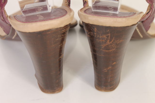 【状態】表面→所々にダメージや変色あり。金具にくすみや変色あり。内側→インソールの所々に変色や薄黒い汚れ、指跡あり。アッパーやストラップにシワあり。ソール→つま先にダメージや薄黒い汚れあり。ヒール→所々にダメージあり。リフトに減りあり。