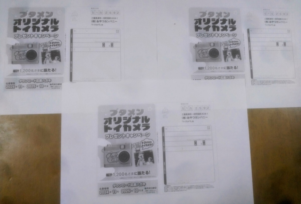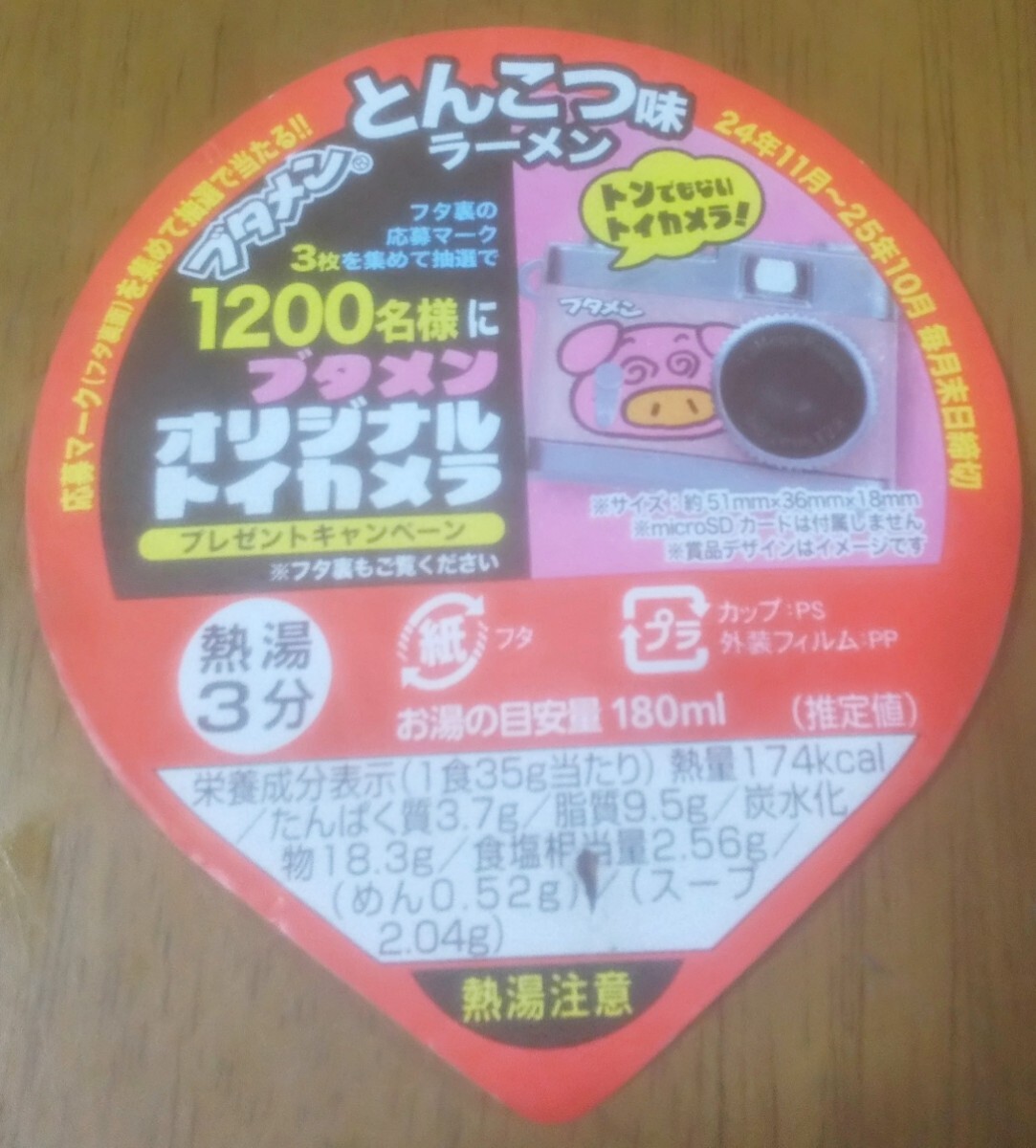 賞品はブタメンオリジナルトイカメラが抽選で当たる懸賞になります。