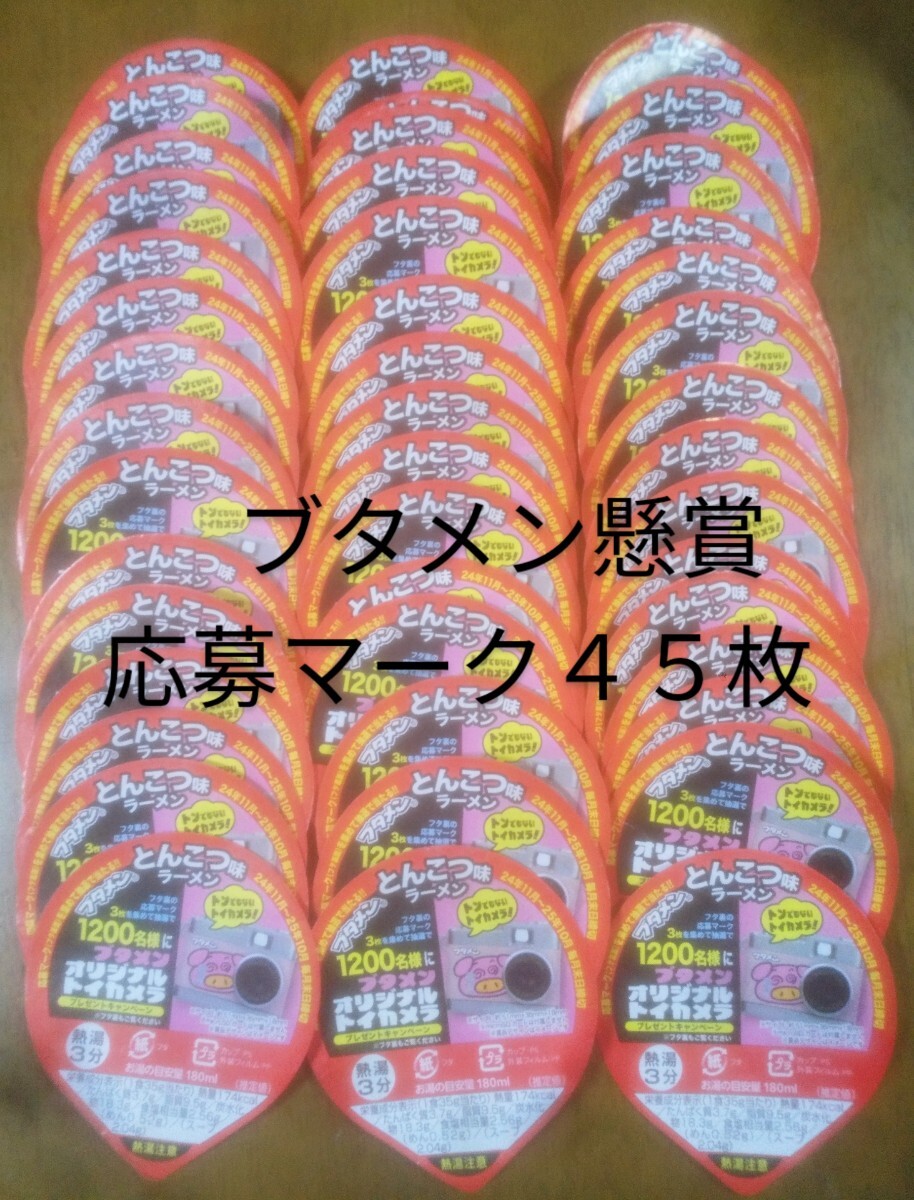 ★懸賞応募★ブタメン応募マーク付きフタ30枚+増量15枚+応募用紙3枚付きセット★A