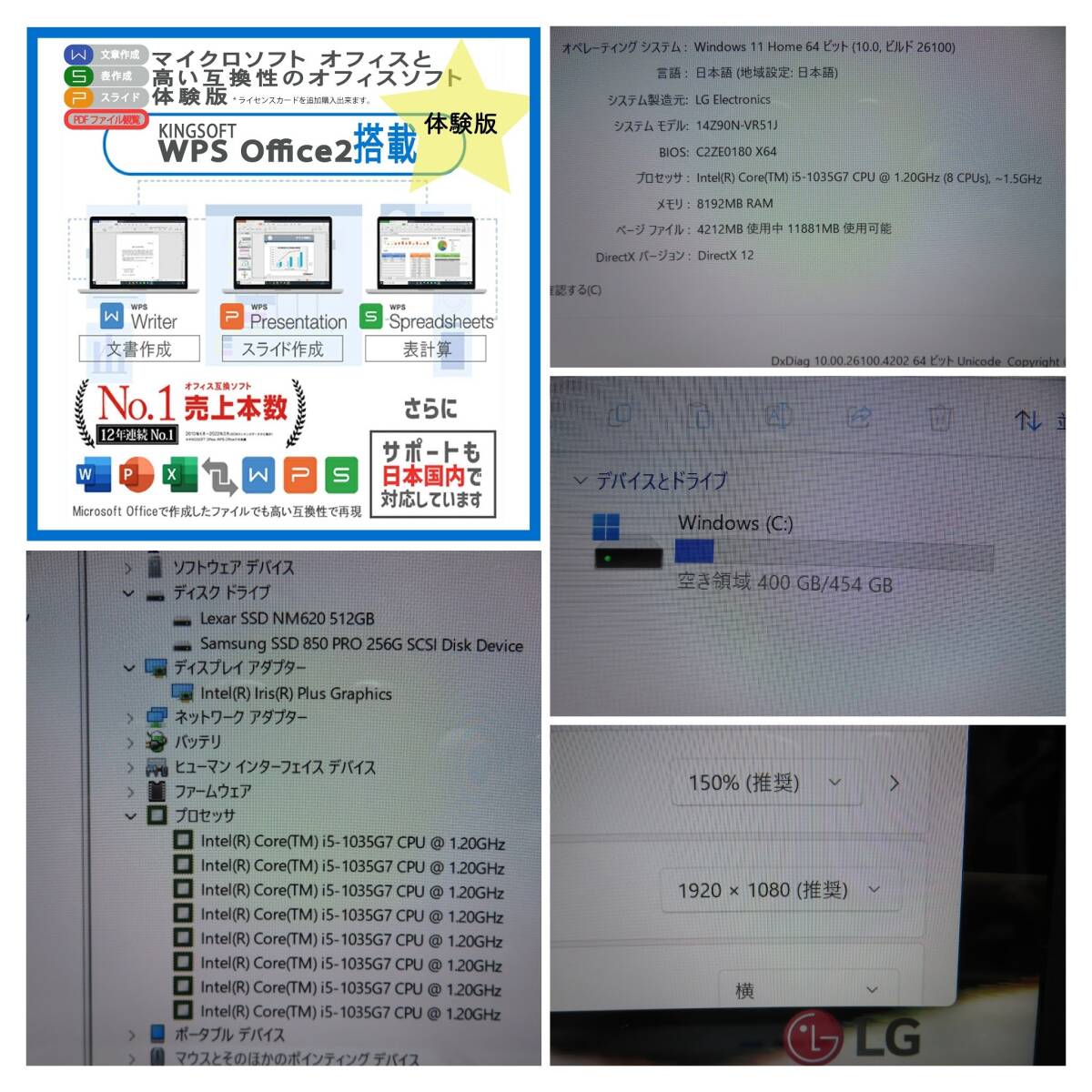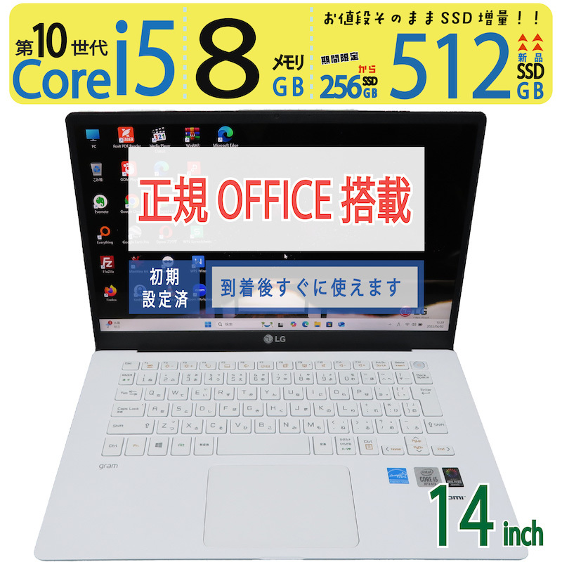 【高速10世代CPU・超軽量】◆LG gram 14Z90N / 14型 ◆ Core i5-1035G7 [高速CPU] / 新SSD 512GB / メモリ8GB ◆ win11 / 正規 Office