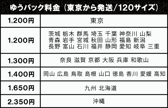 「ゆうパック」にて配送致します。 商品を厳重梱包する為商品よりも多少大きめの梱包になる場合がありますがご了承下さい。 また、落札価格が30万円を超える場合はゆうパックのセキュリティサービスにてお送り致します。送料は据え置きとなりますのでご安心下さい。 ※配送業者の都合により、予告なく配送業者が変更になる場合がございますので予めご了承下さい。 ※ゆうパックの場合、配送時間帯を下記からお選びいただけます。 午前、12:00~14:00、14:00~16:00、16:00~18:00、18:00~20:00、19:00~21:00 180~260サイズの場合は「西濃運輸」にて配送致します。 【西濃運輸の場合の注意事項】 ※配送先が『沖縄』の場合、航空便となりますので配送料金にご注意ください。 ※配送業者の変更は出来ませんので、予めご了承下さい。 ※配送業者の規約上、日曜・祝日・祭日の配達指定は出来ません。 ※配送業者の規約上、配送時間帯はお選びいただけません。