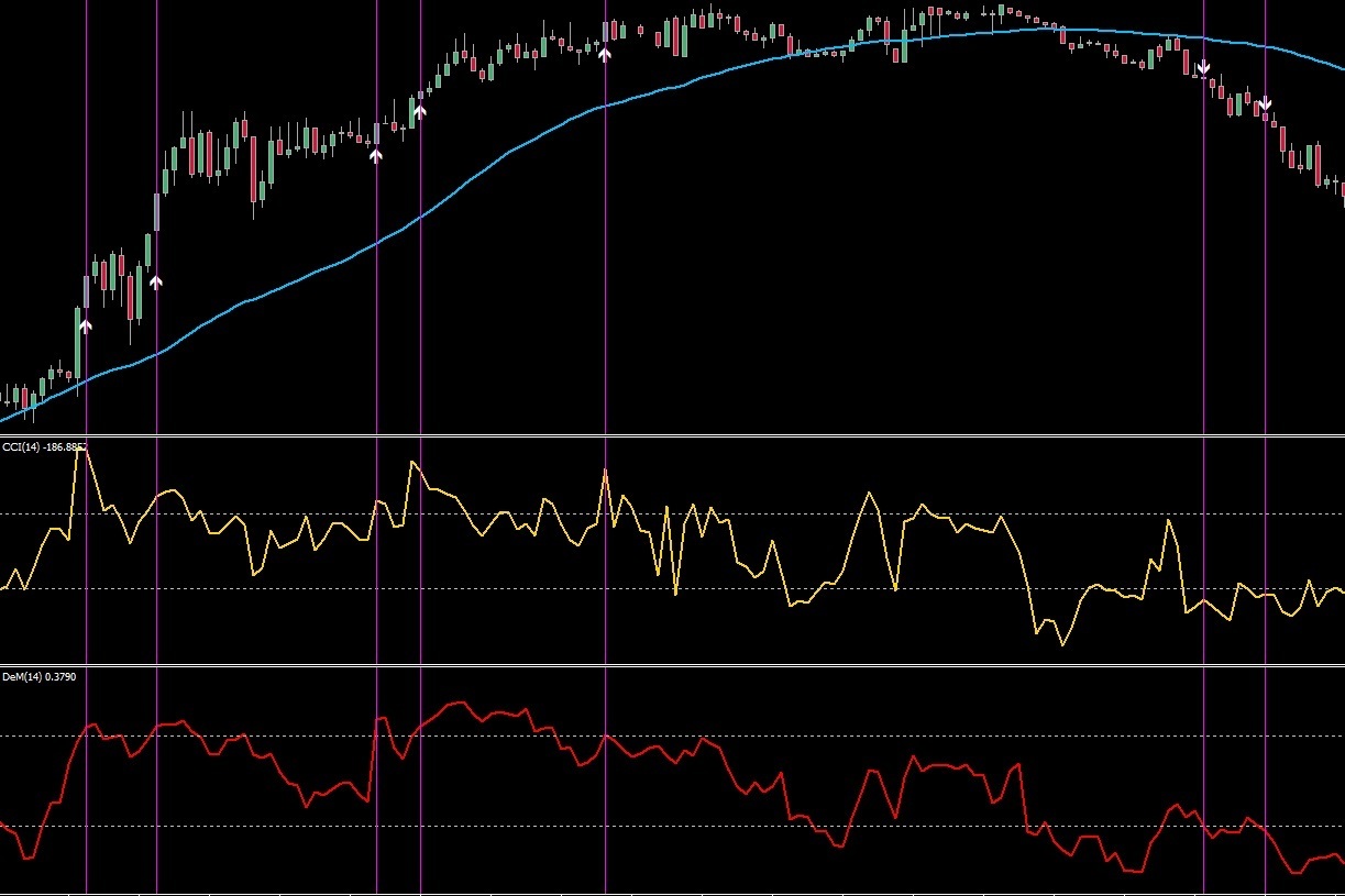 全てのサインは、DeMarkerが上限・下限を超えた時に、その他の条件が満たされていた場合に出現します。