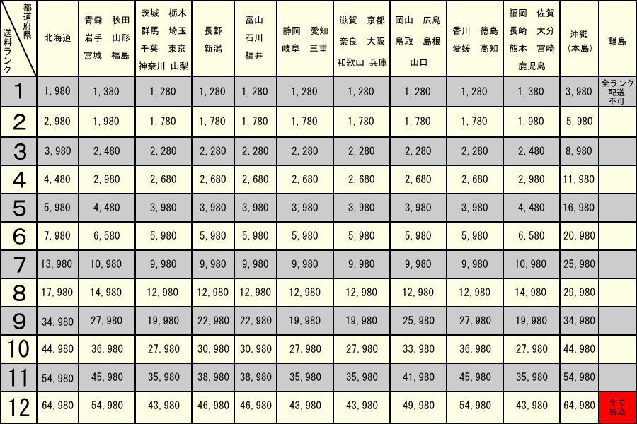 I.家具等超大件或超过30KG的物品,需要增收超重处理费 3000日元/件。