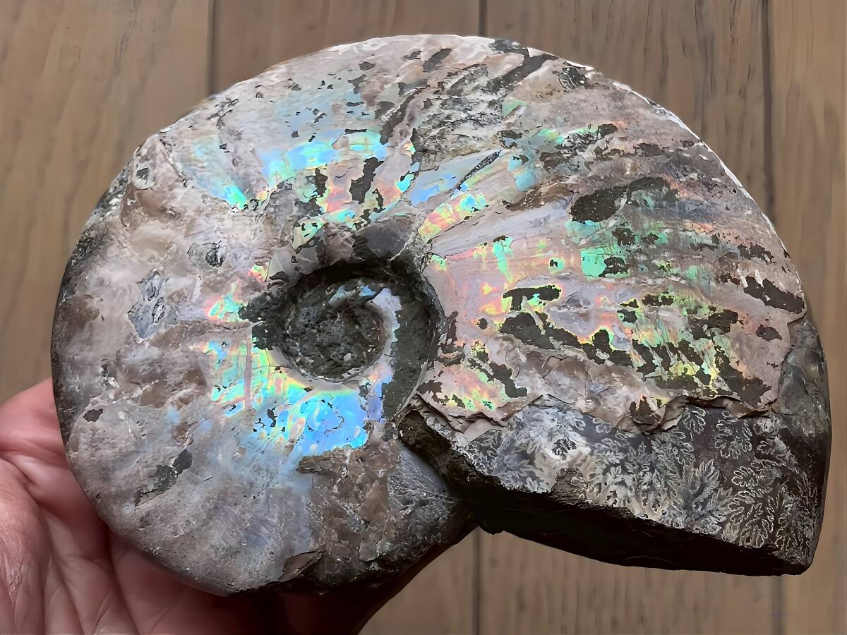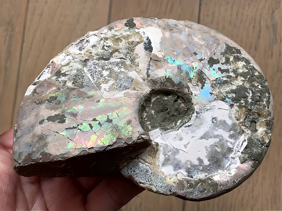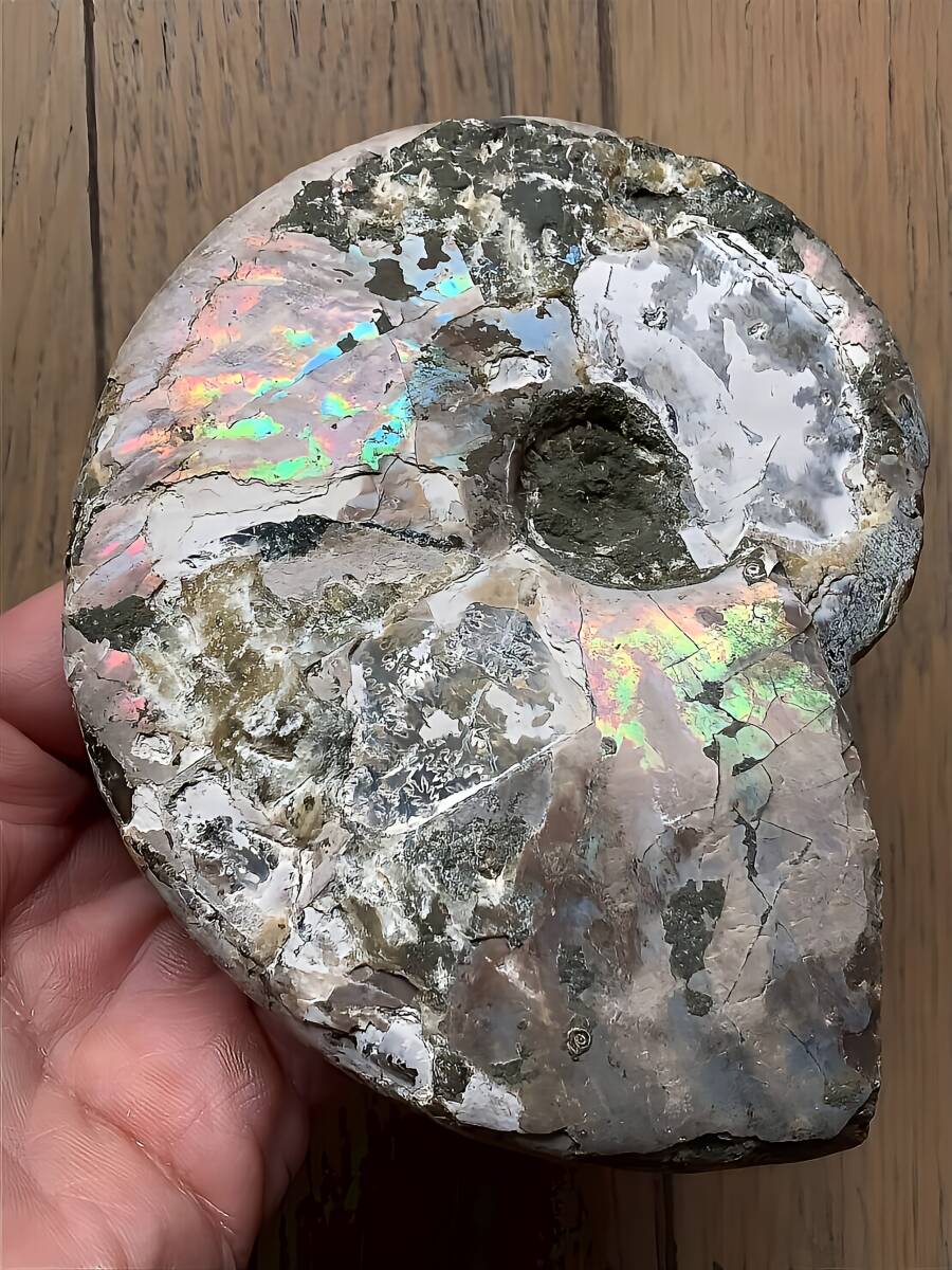 | ☆ | 商品名:マダガスカル産 遊色虹色アンモナイト青(クレオニセラス)発色 ■アンモナイト仏語名: Ammonite Nacre Cleoniceras ■原産地 マダガスカル、マハジャンガ産 ■サイズ・重さ:329g/11.7cm ■アンモナイトは、古生代シルル紀末期から中生代白亜紀末までの約3億5000万年前後の間を、海洋に広く分布し繁栄していた頭足類の分類群の一つです。 全ての種が平らな巻き貝の形をした殻を持っているのが特徴です。 虹色の遊色効果があるアンモナイトです。殻表面が日光や照明にあたる角度によって青、緑、紫、ピンク等に輝き飽きがきません。カラフルな色彩の個体をお探しの方や、プレゼントとしての化石をお考えの方はこの機会にいかがでしょうか。 ■配送方法:レターパックプラス ■送料負担:落札者 ■発送元:東京都 ■海外発送:対応不可 ■発送日までの日数:入金手続き当日発送 ●注意事項● ■ まとめて取引は可能な限り対応します。発送方法の変更が不可な場合はお断りする場合がございますが、同梱にて2点目以降送料無料対応いたします。 ■支払期限については原則2日以内にお願いします。 ■ノークレーム、ノーリターンでお願いしておりますので化石商品の性質をよく御理解した上で入札をお願い致します。 ■評価の悪い方の入札は取り消します。 ■商品は天然物につき画像には映らない多少のキズ、欠け等がある可能性、またカメラの性能や光の具合によって現物との色の違いが若干ある場合がございます。写真コメントで説明していますが、伝わらない点についてはご了承願います。撮影には一切照明を使用せず、日中の自然光で撮影をしています。 | ★ | |||||||