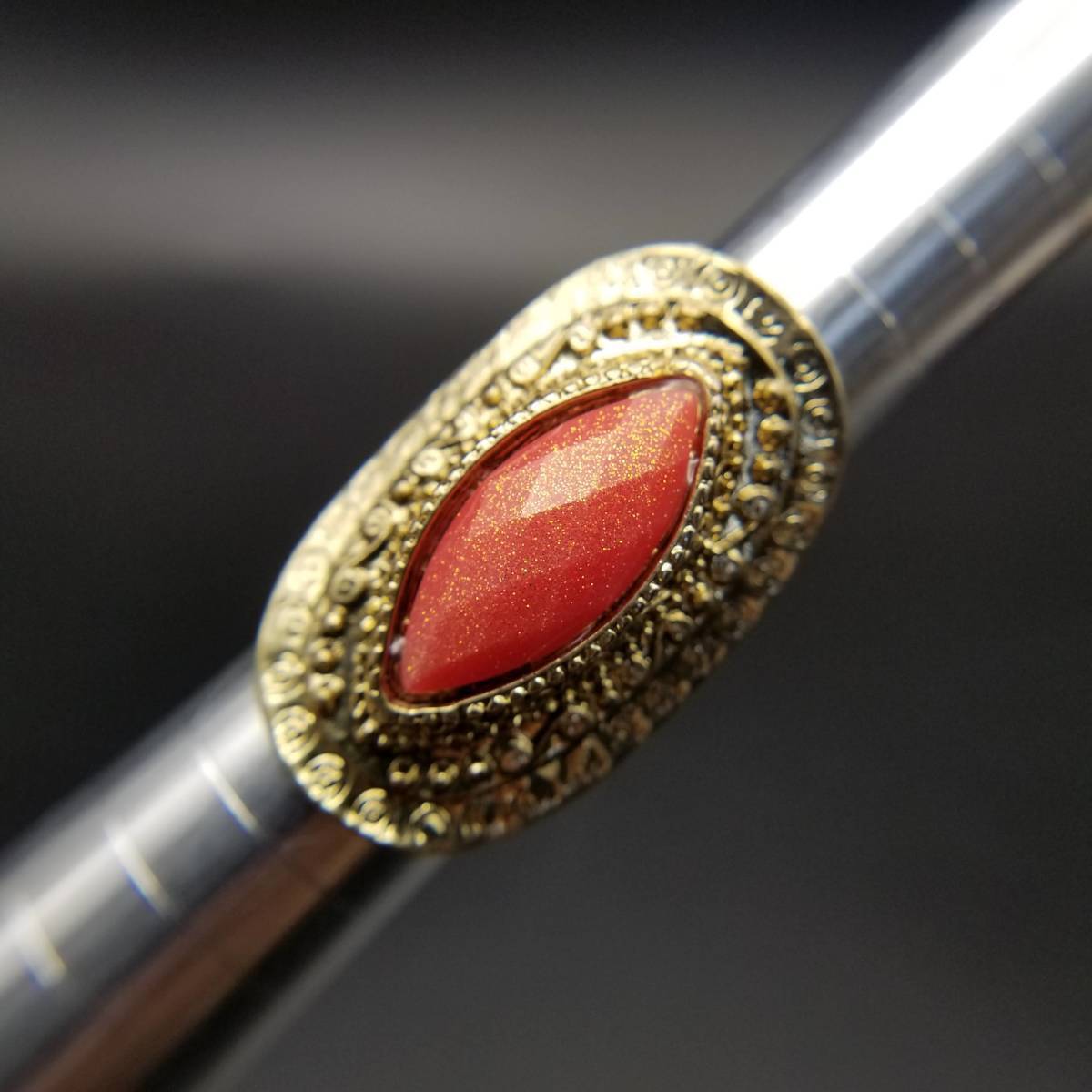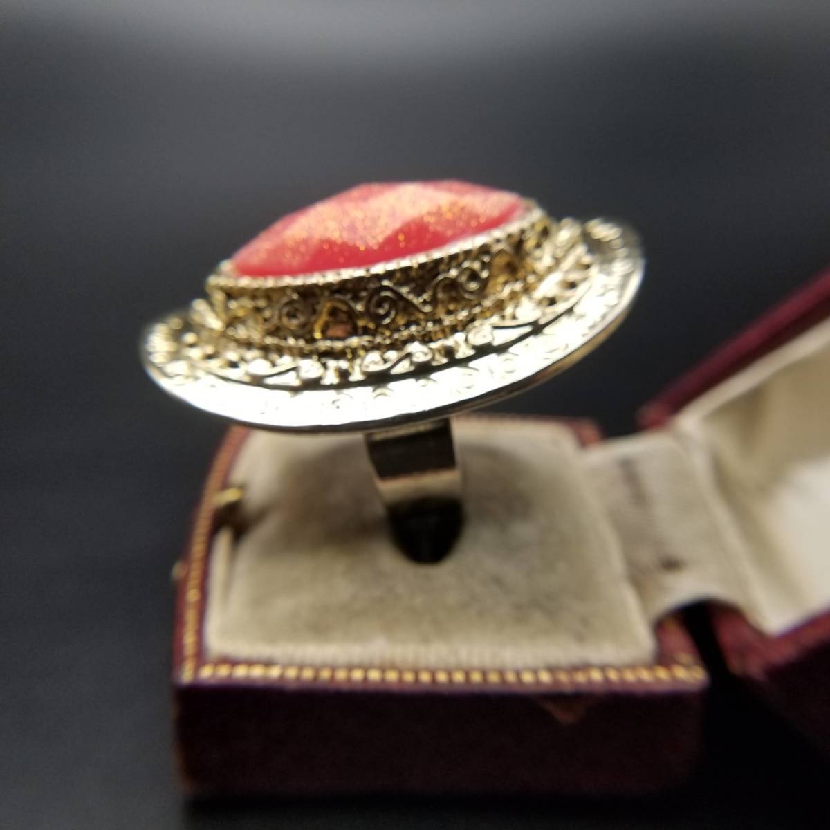 ゴージャス オレンジ マーキストップ ヴィンテージ シールド リング 指輪 ゴールドトーン オットマンスタイル ファッションジュエリー 5-X