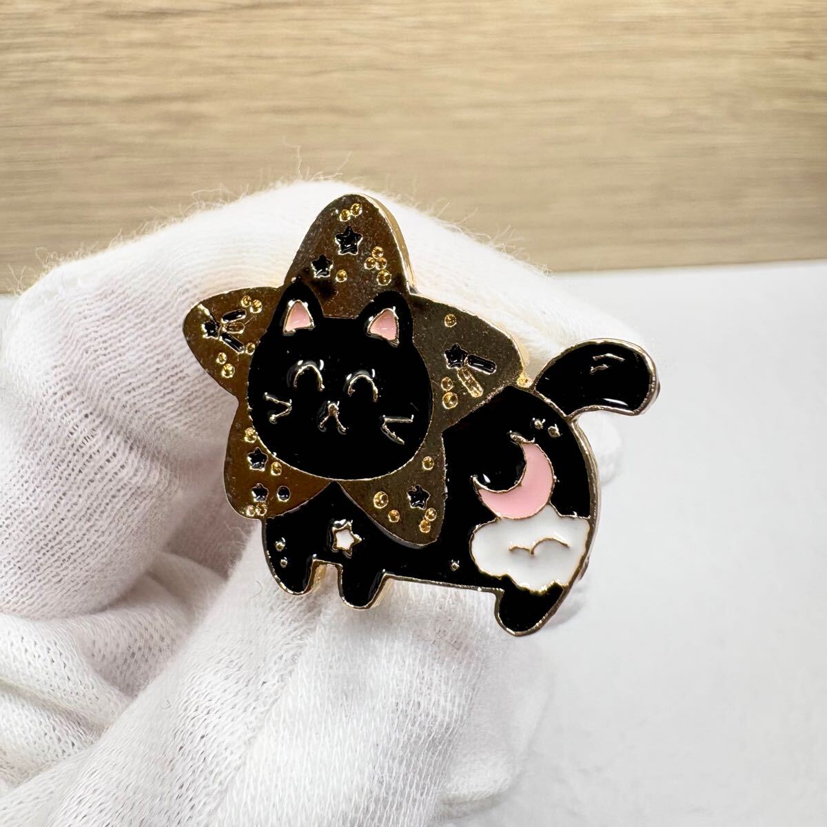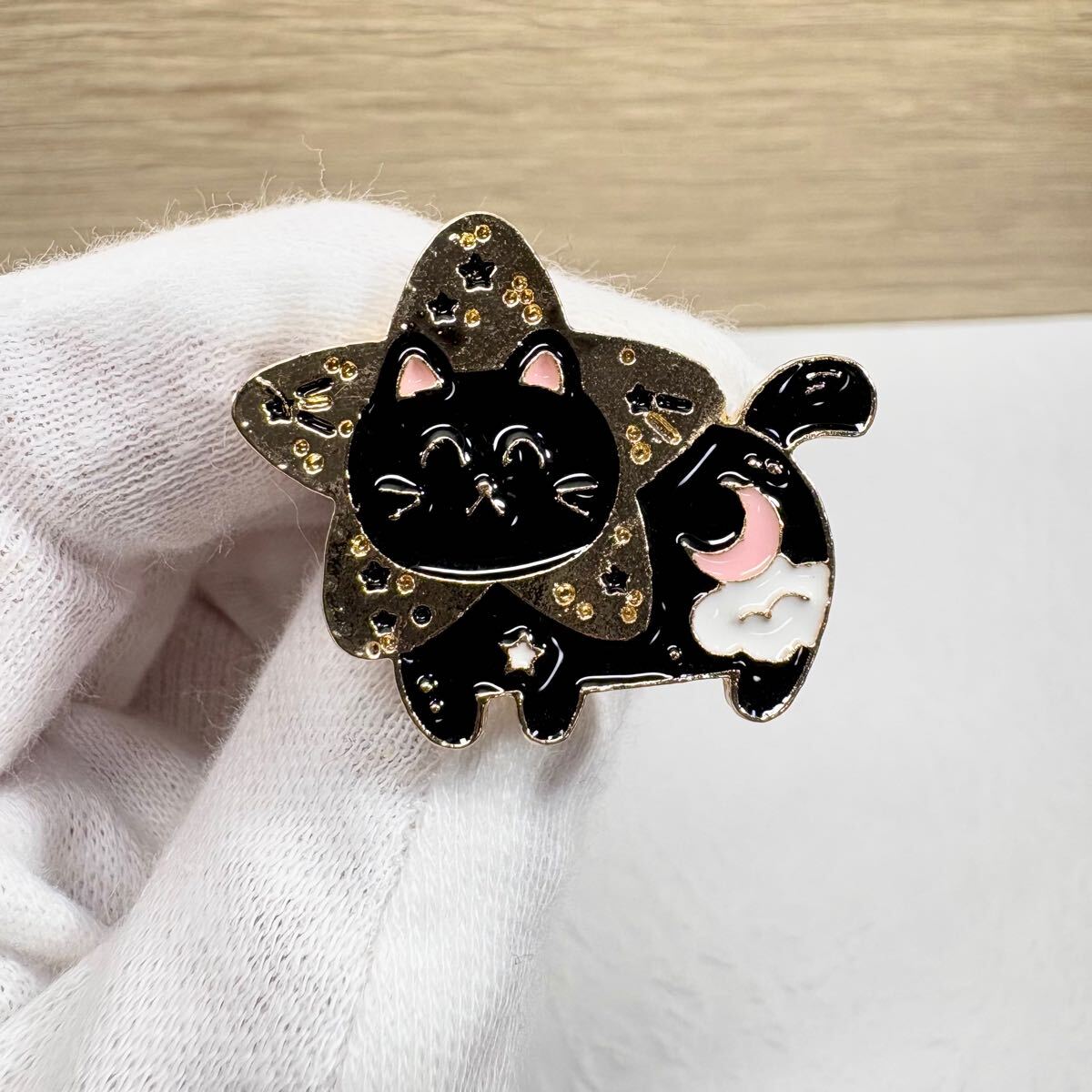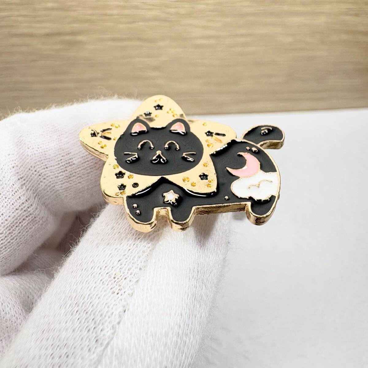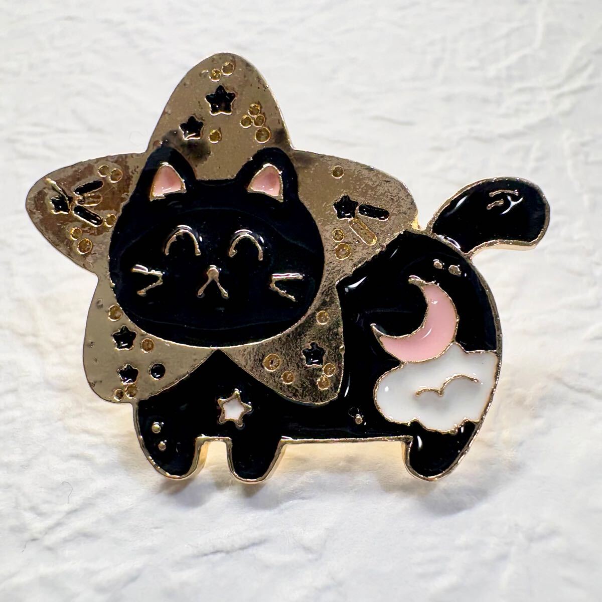 【ピンバッジ】星空の黒猫 星型 夜空 ニコニコ かわいい ねこ にゃんこ