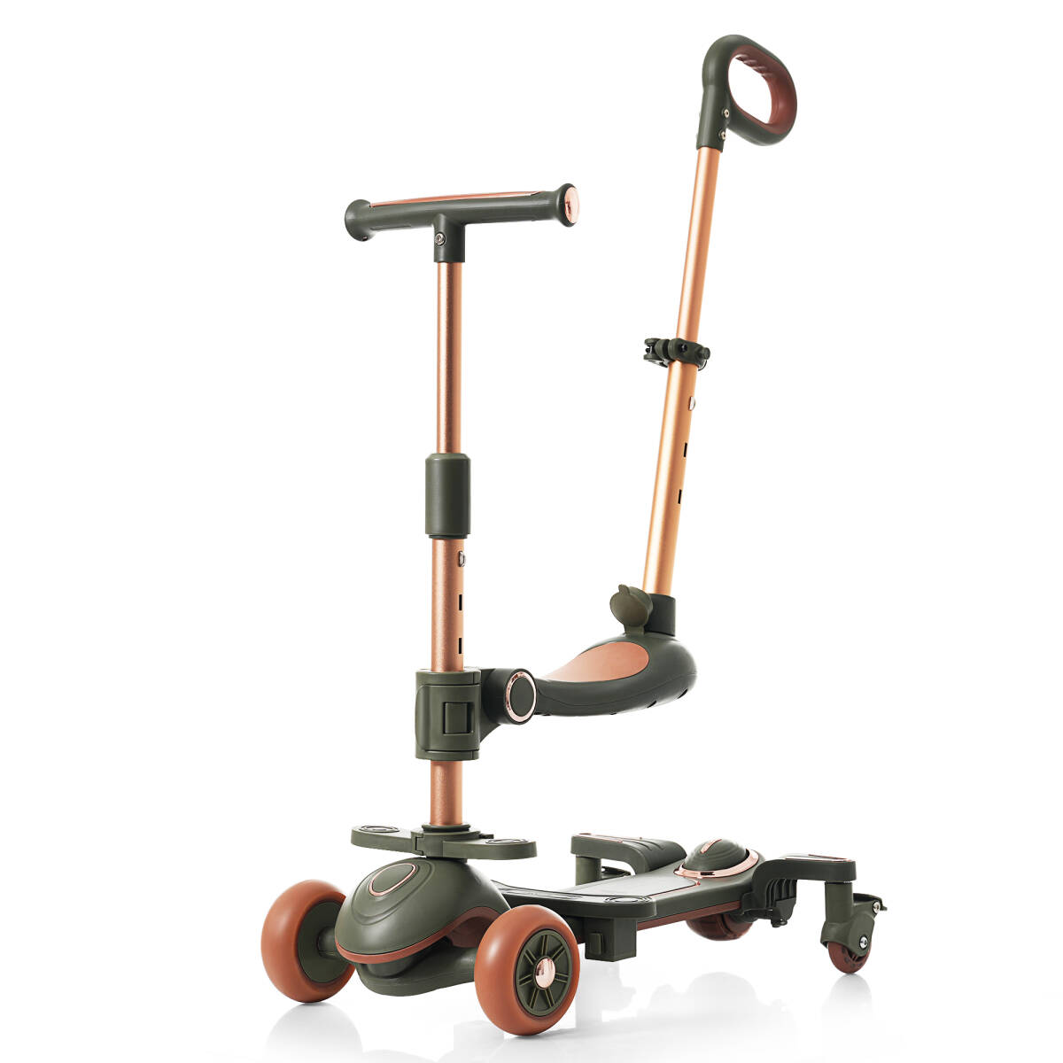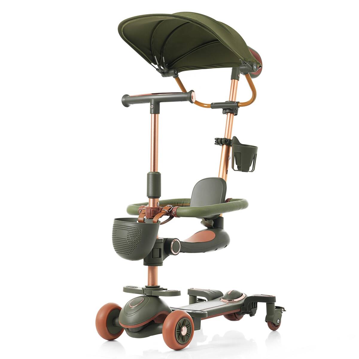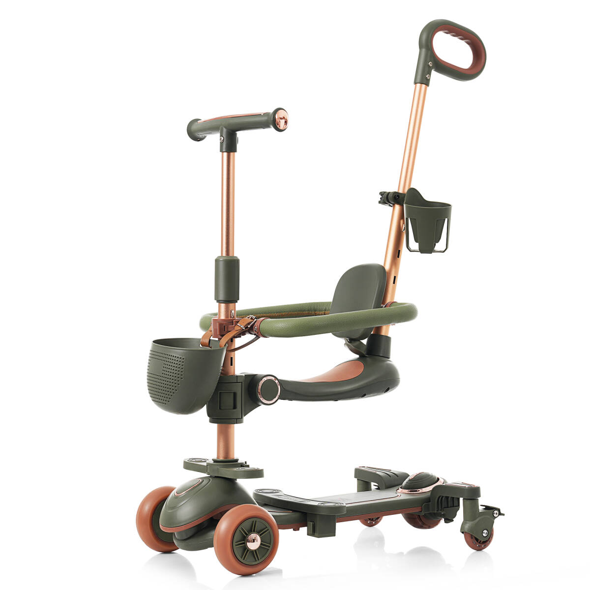 • ●DETAILS ①滑り止め粒付きデッキ、大きく厚くて踏みやすい。②幅広のユニバーサルホイール、安全に横転防止。③快適な前/中置足踏み④カップホルダー付き⑤車のかご付き
