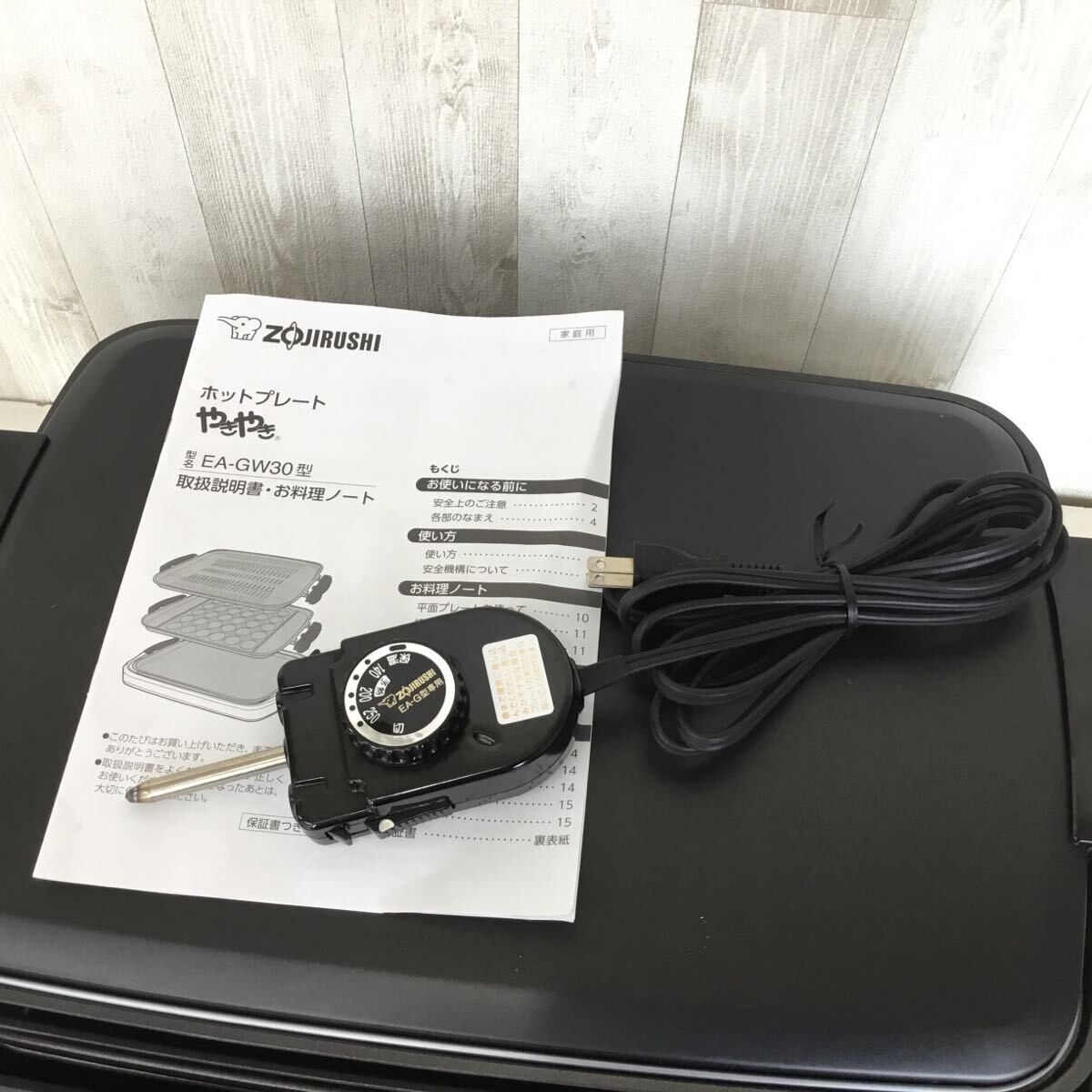 | ・サイズ(cm):約54 × 37.5 × 18 ・本体質量(kg):約8.5 ・付属品:本体、取扱説明書、プレート3種(平面、穴あき焼肉、たこ焼き) ・動作確認済みです。 https://www.zojirushi.co.jp/syohin/kitchen/hot_plate/ea-gw/ |