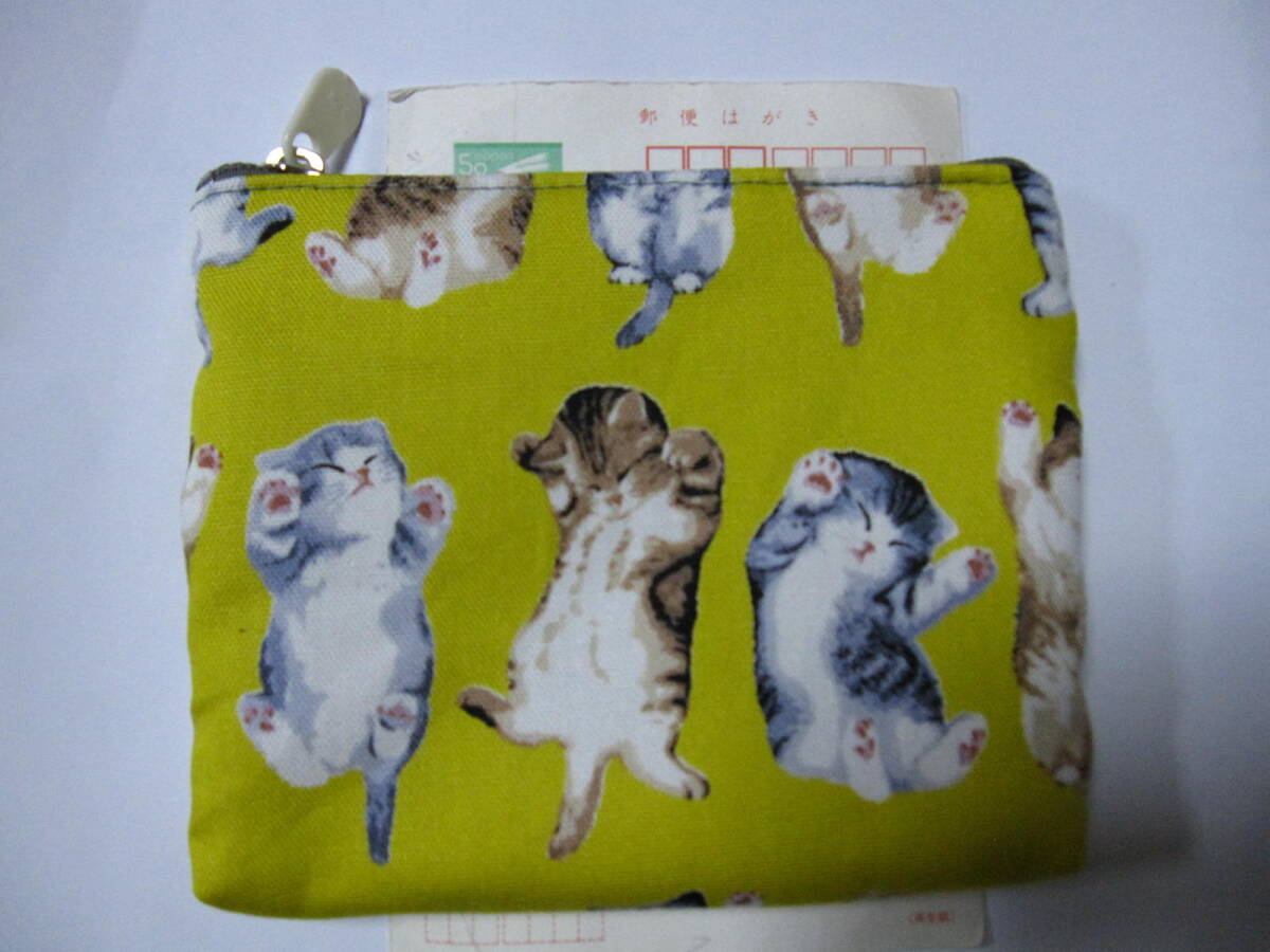★ ハンドメイド  お財布・ポーチ  ネコちゃん好きにはたまらない♪  (マスタード)  ※1点のみ。