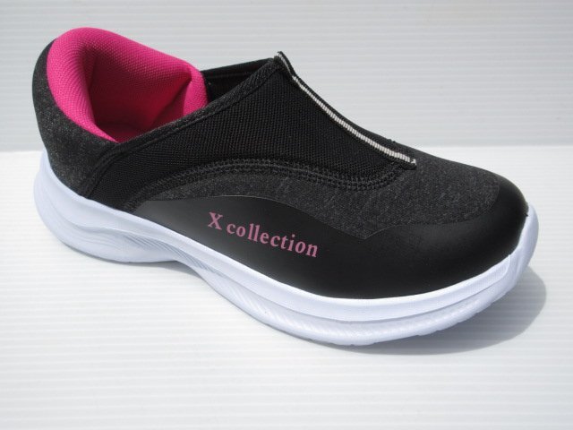 即決 24,5cm スルッと履ける スリッポン スニーカー 超軽量 幅広 X Collection 5432 黒 婦人 レディース デイサービス 作業履き