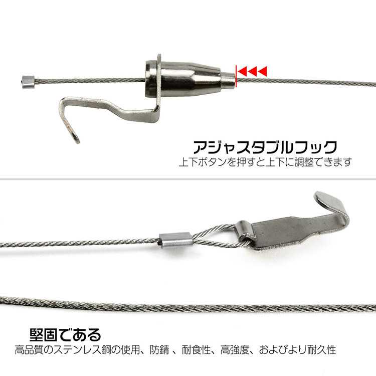 材質:ピクチャーレールワイヤーはステンレス製です。優れた防錆性、耐久性。使用荷重は約20kg。