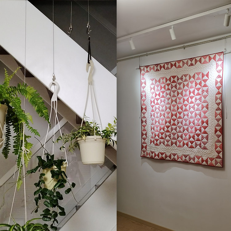 応用:ピクチャーレールワイヤーは絵画、写真、ポスターなど美術品などを吊るときに使用されます。