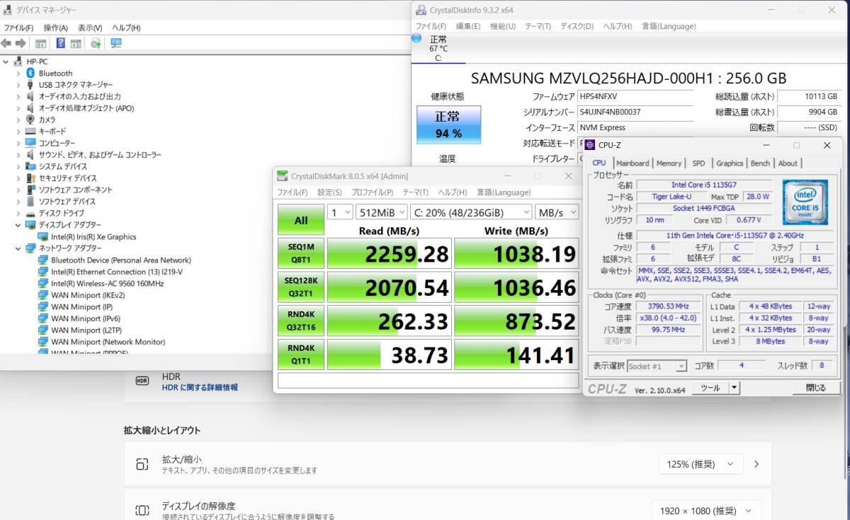 | CPU: 卓越性能 第11世代Core i5-1135G7 2.4Ghz、 4コア8スレッド (ターボ・ブースト利用時の最大周波数 4.2GHz) |