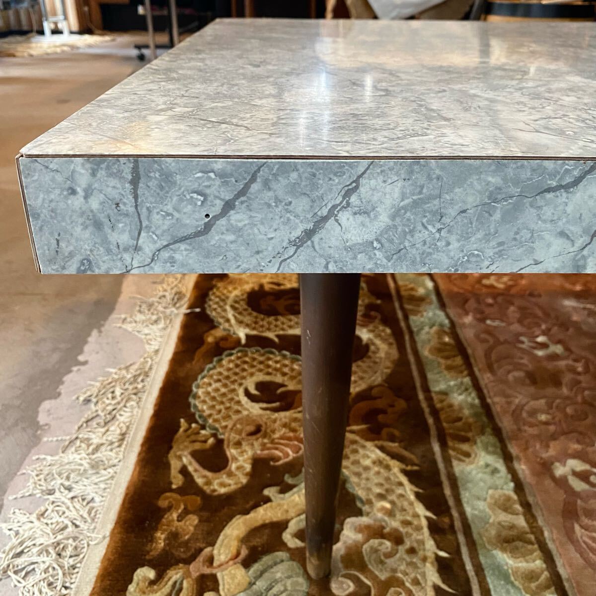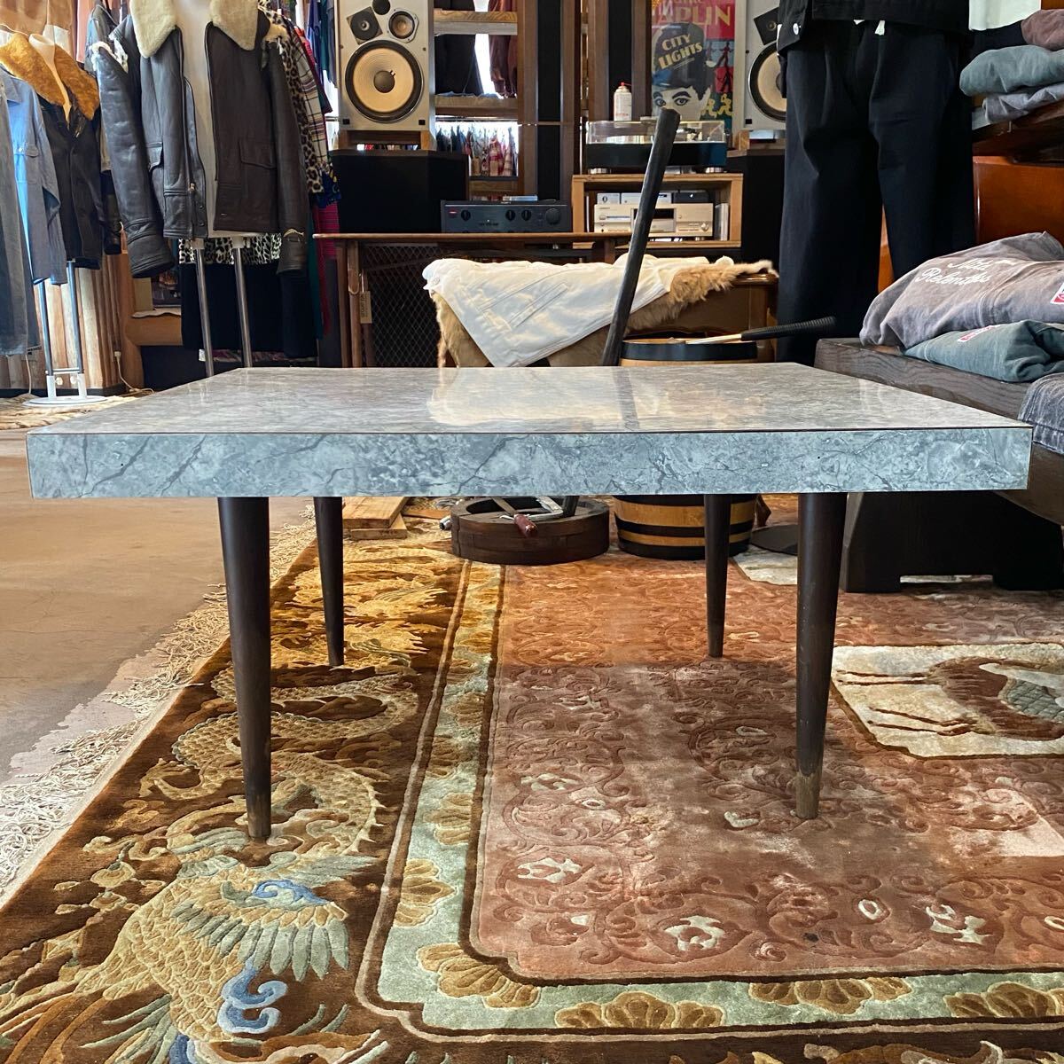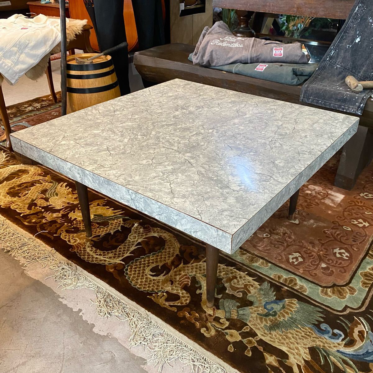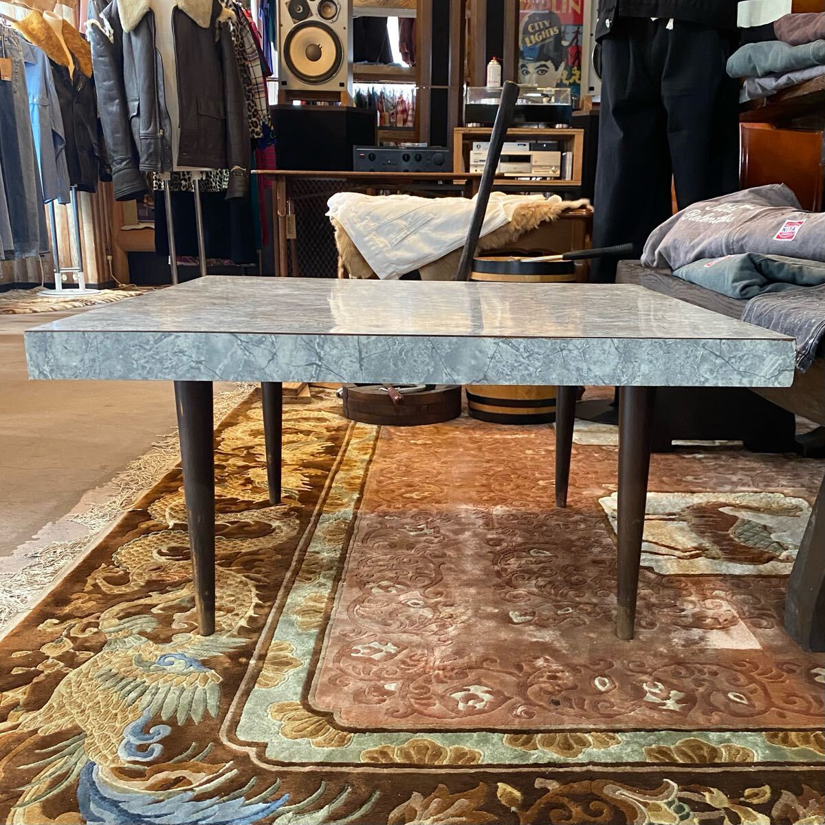 1950年代頃ミッドセンチュリー期のローテーブルです。 大きめ76cmの正方形。大理石調の天板。 アジのある当時らしい脚に薄色の大理石模様。存在感ありますが、重量無く使いやすい一品です。 【サイズ】(約) 高さ382mm 天板760mm×760mm 【状態】 各角にカケ等ございます。 経年の細かなキズや汚れございますが、アジとしてお楽しみください。 商品No:k00249 |