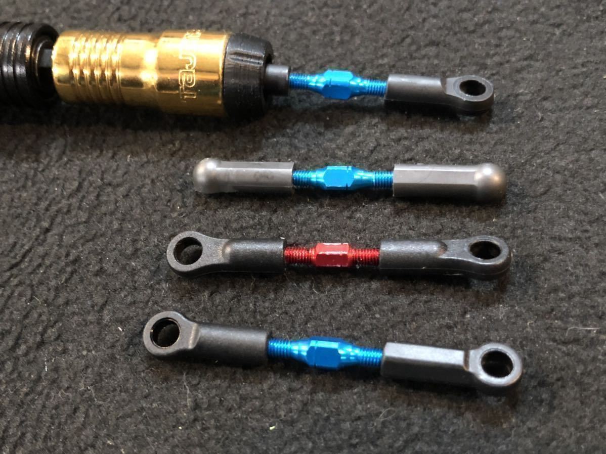 タミヤ・オープンタイプ5mm強化アジャスターにジャストフィットするように調整してありますが、タミヤの旧型アジャスターやインフィニティ・XRAYのオープンタイプにでも使用できます。