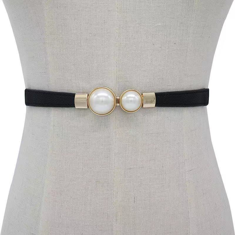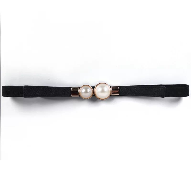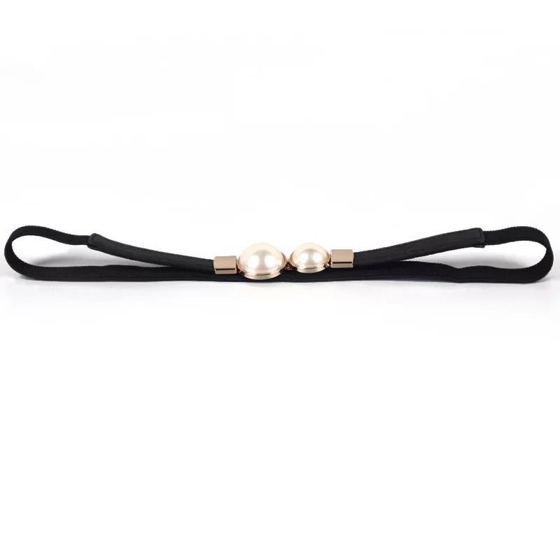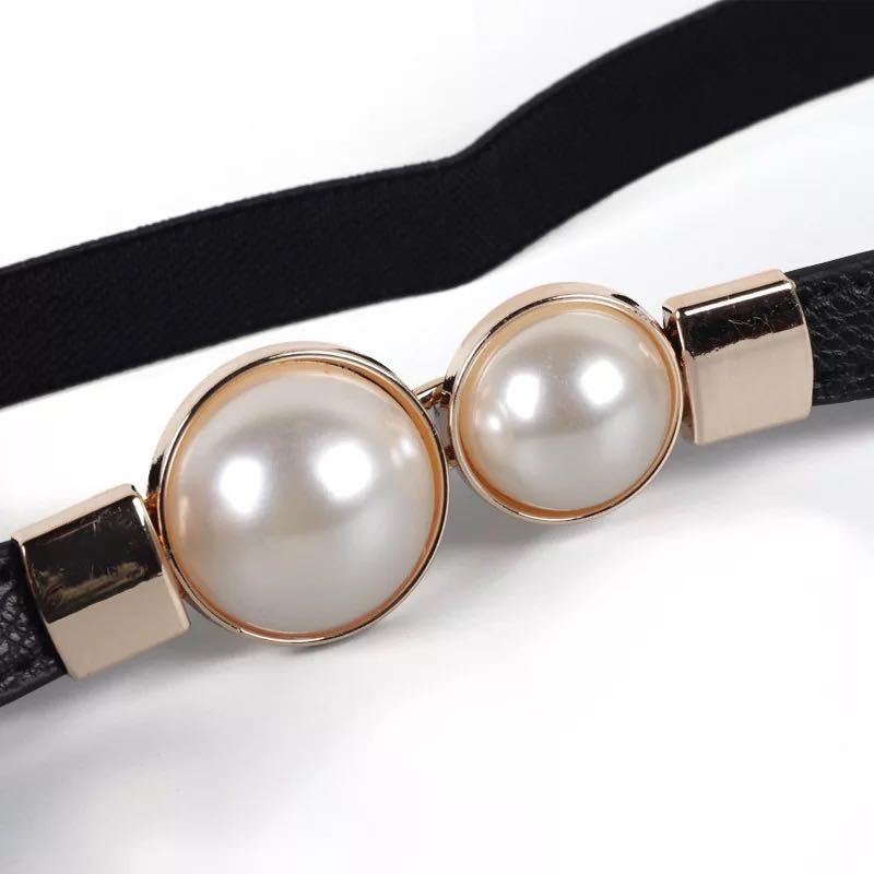 BE1029BK29★パールのゴールドバックルのゴムベルト★黒