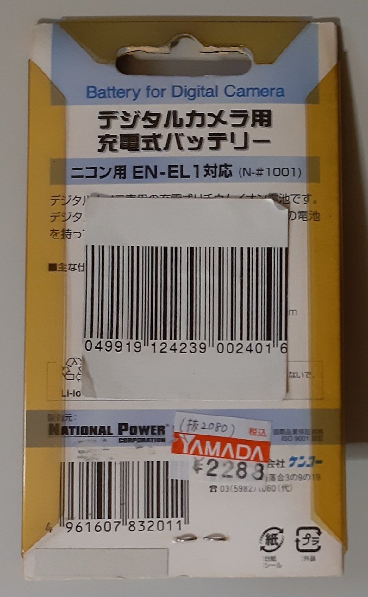 6297 未使用未開封 互換バッテリー Nicon EN-EL1対応 kenko リチウムイオン充電池 7.4V 720mAh N-#1001 Li-ion ケンコー・トキナー