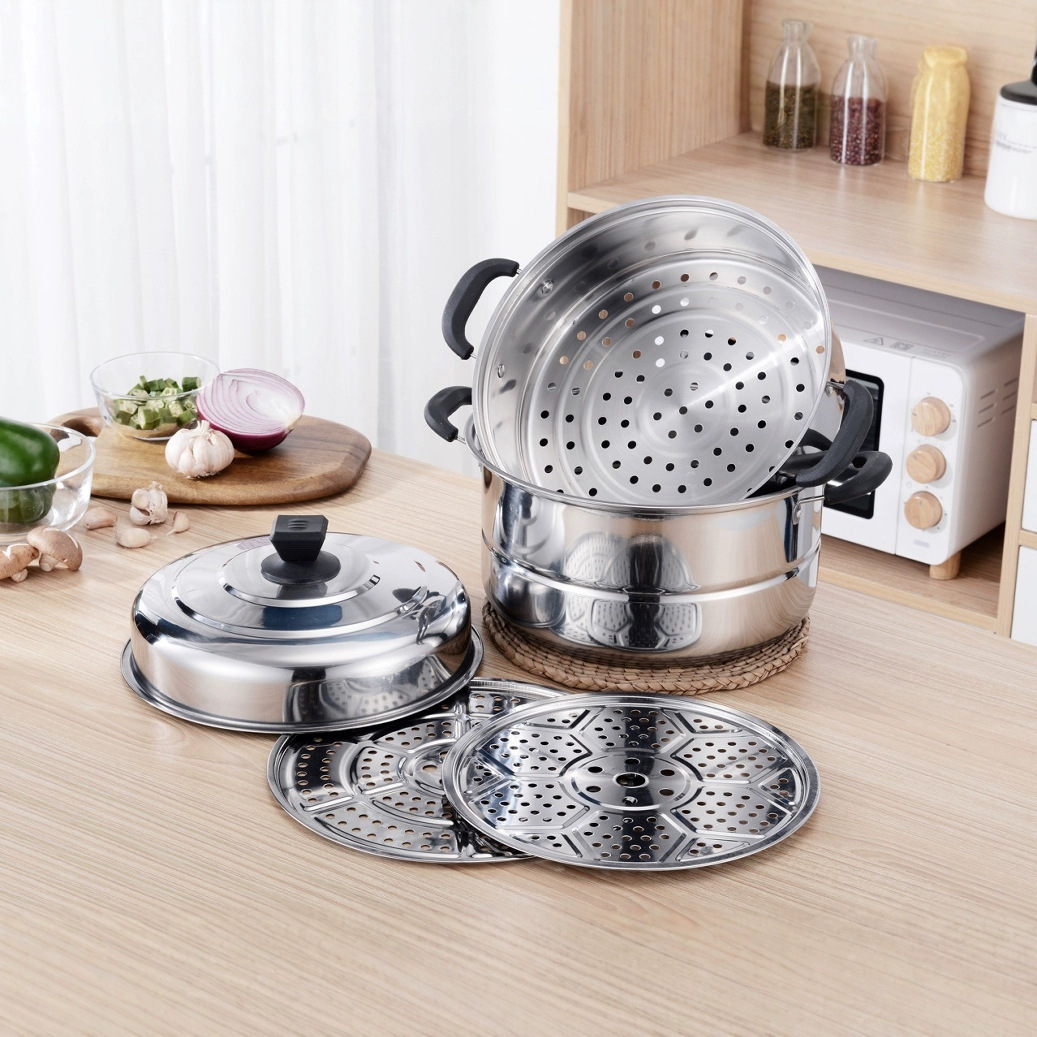 新品蒸し器 三段 30cm 大容量 ステンレス せいろ 蒸籠 IH対応 ガス火対応 蒸し鍋スチーム調理器両手鍋蓋付きステンレス鍋 調理鍋 蒸し料理