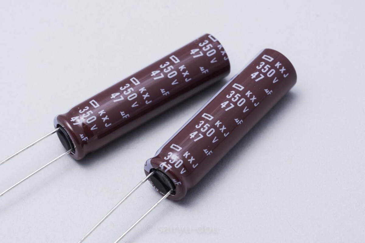 日本ケミコンのKXJシリーズ長寿命型アルミ電解コンデンサです