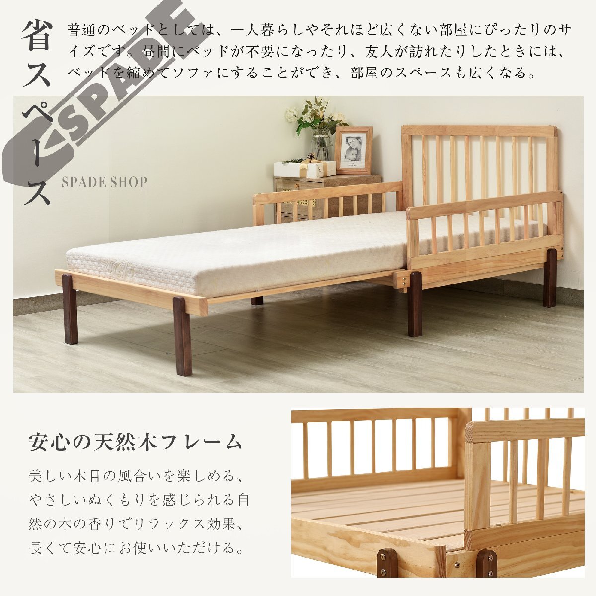【国内発送】 天然木 頑丈 耐震 ソファベッド ディベッド 伸長式ベッド 木製 引き出し付き 収納付き おしゃれ 2way 北欧風