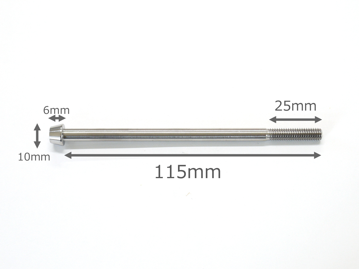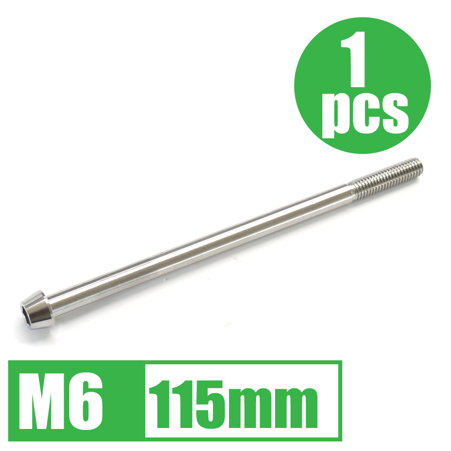 64チタン合金ボルト M6×115mm P1.0 1本 テーパーキャップ ゆうパケット対応 焼き色なし Ti-6Al-4V