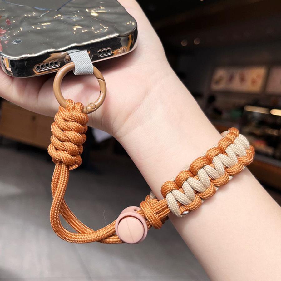 スマホ ストラップ 手首 編み込み シリコン おしゃれ 可愛い 落下防止 ブラウン ハンド 両手フリー 携帯 ハンズフリー D
