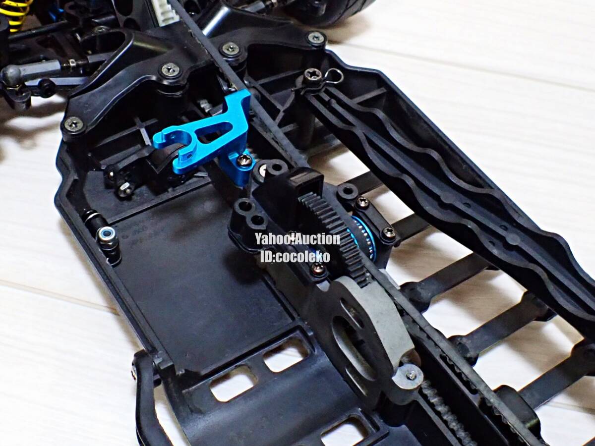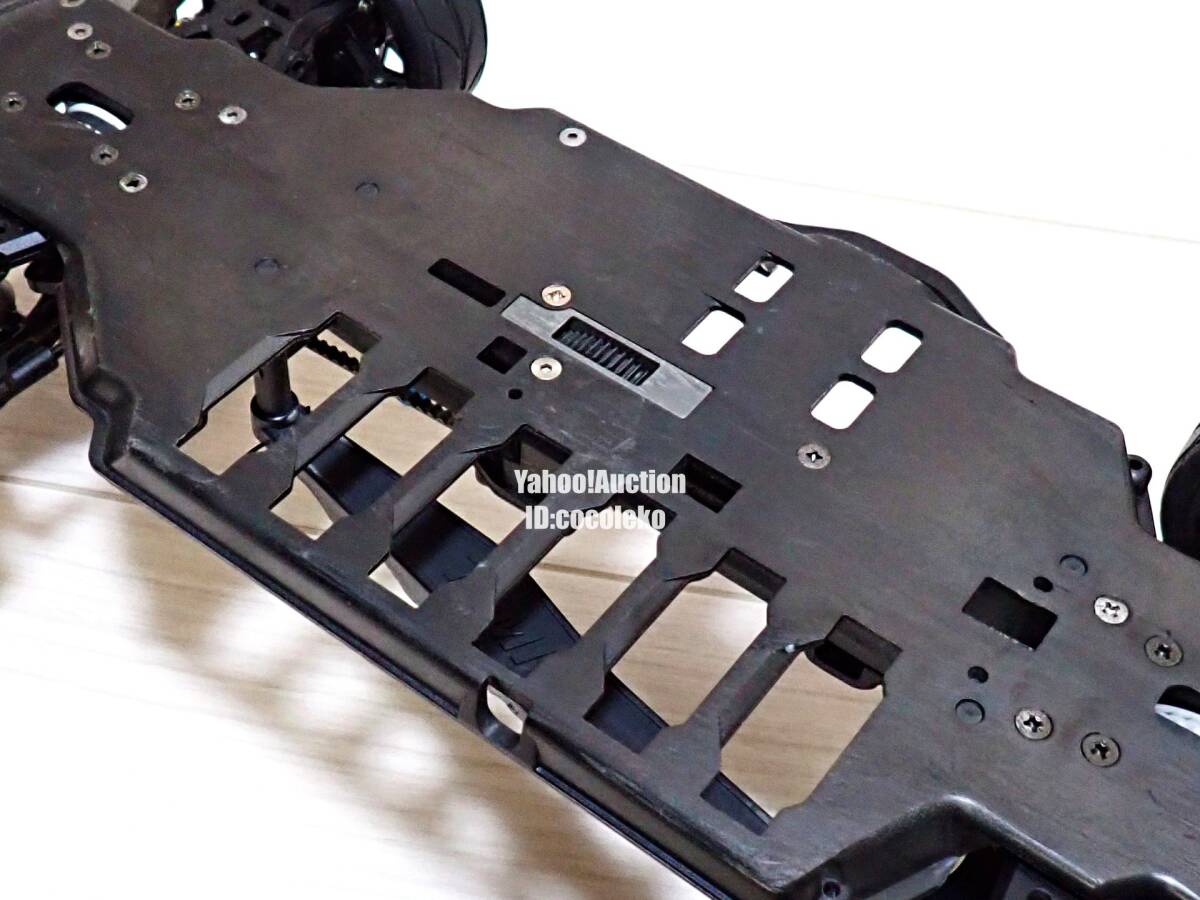 シャーシにはTRFダンパー、アルミリテーナー、前後アルミサスマウント、前後ユニバーサルシャフト、アルミモーターヒートシンク、センターワンウェイなどオプションパーツが多数組み込まれてます。